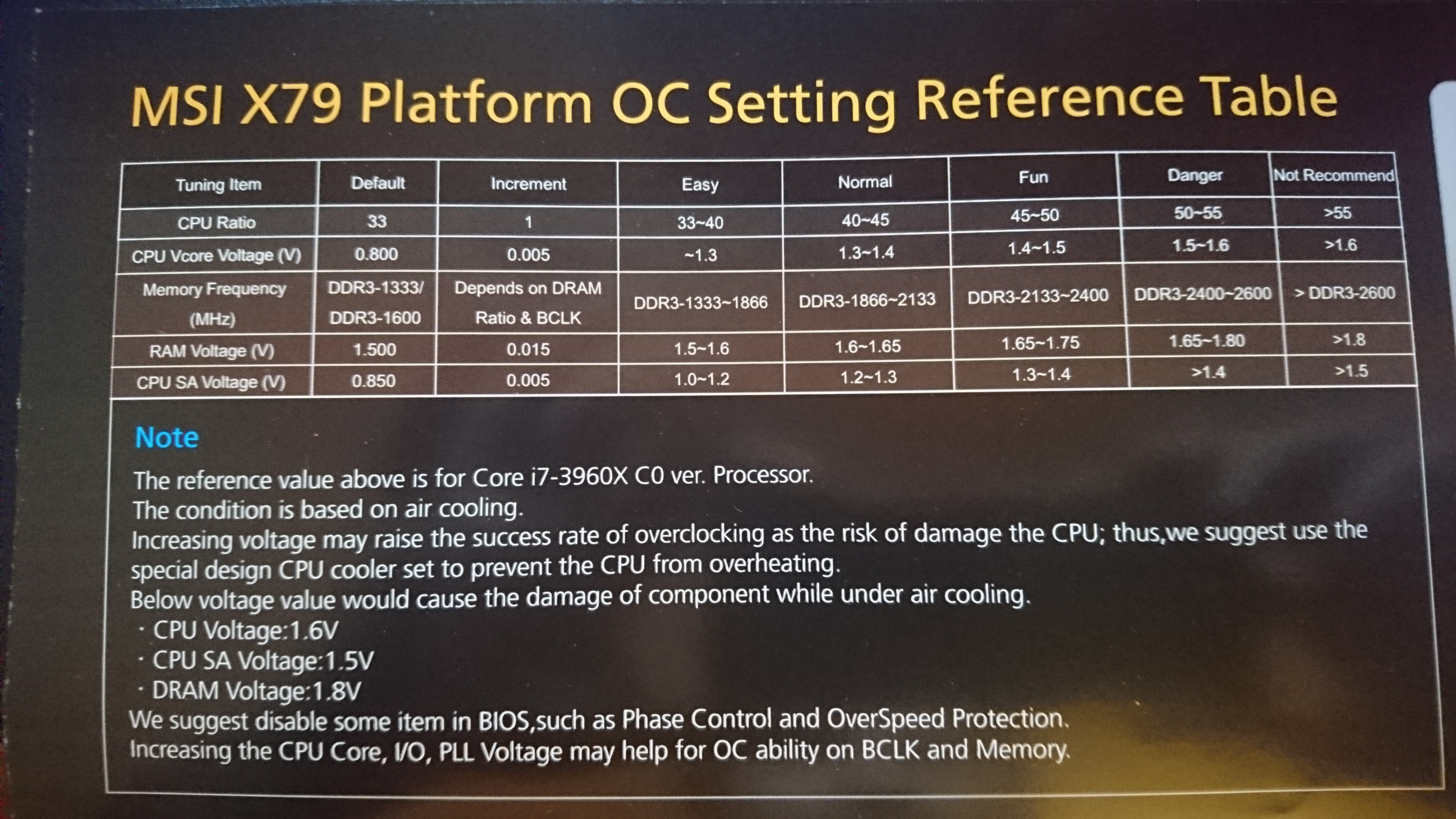 Протестил. Ситуация невероятно странная. Выше я писал, что при настройках 45х100 и 1.4в и всеми завышенными VTT и VCCSA система не стартует, теперь поставил 45х100 при 1.39 и с Вашими настройками, система запустилась, прошла 3DMark 11 и Cinebench, однако в Prime 95 через минут 5, как включился второй тест, выдала синьку..(((( Самое холодное ядро в прайме было 71, самое горячее 82, не думаю, что это перегрев. Не пойму вообще какие настройки ставить для этого камня и этой мамы. Может я завысил настройки смотря на то, как разгоняют 3960х на этой мамке... уже не помню, факт в том, что это совсем другая архитектура и может я не догоняю, что ей нужно. В коробке был вкладыш: