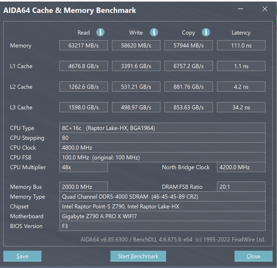 К вопросу о 4-слотовых платах c DDR5. Giga Z790 A Aorus PRO X WIFI7 + 13950HX Никаких приятных сюрпризов, в 2/4 слотах нет старта, в 1/3 все работает, частота памяти 4000, скорости соответствующие. В биос удалось загрузиться максимум на 4800, но при любых значения выше 4000 ребут при попытке загрузки винды.