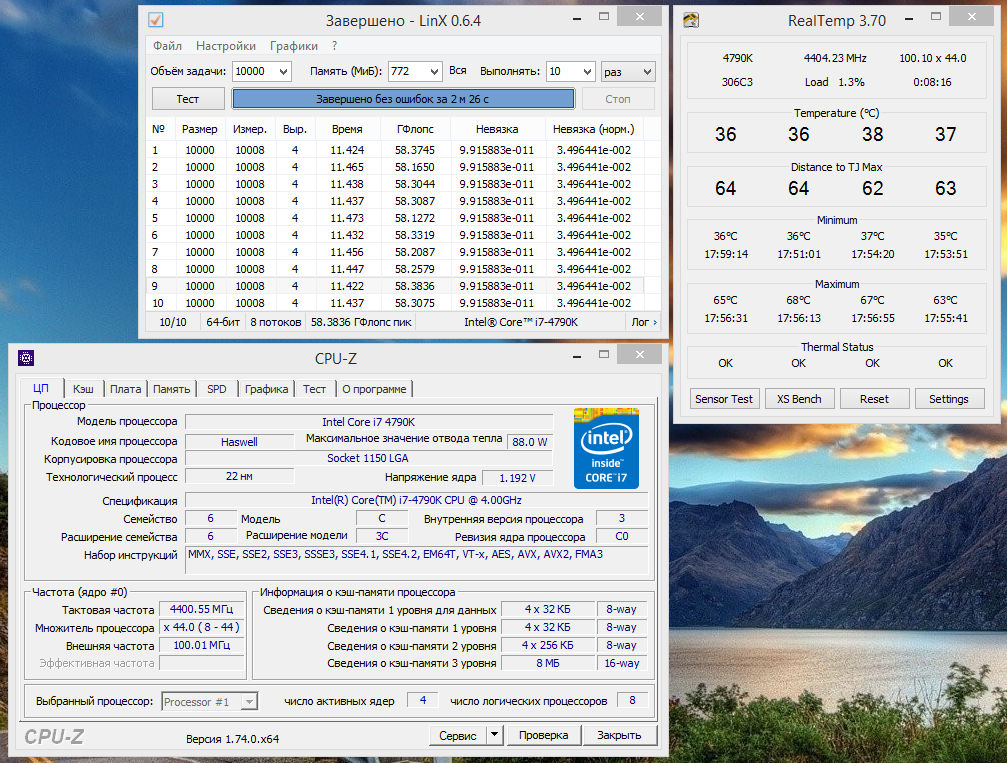 Melinio ну что такое 10000 задач для такого камня и 16гб оперы? задействуй хотя бы половину.... отсюда и гфлопсы никакие. вот тогда и посмотришь на температуру, а так же на достаточность вольтажа цпу. если словишь бсод 124 - смело накидывай еще напругу и т.д.