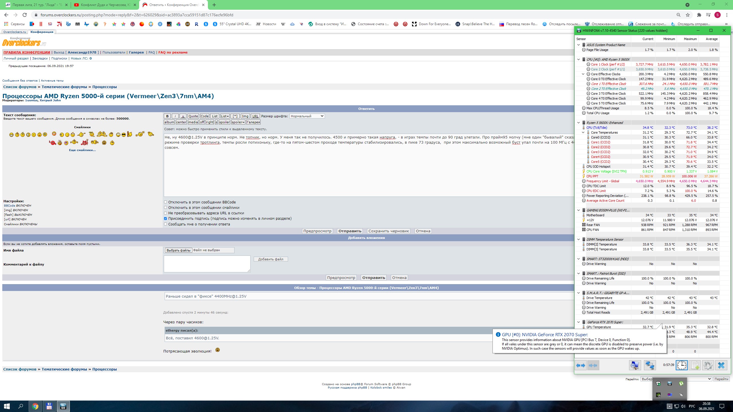6eлоруС_80 1.да, просто хмр включил 2.вода две секции с бачком в контуре. Правда не осблуживал давненько и в залит там тосол))) видел хлопья осадка, думаю походу пора перезаливать. Правда тут же на форуме говорят, что мол в стресс тесте температура до 95гр норм. Тем более это линкс, очень тяжёлый тест. 3.напряжения не трогал, все автоматом (мать gigabyte aorus x570 elite) 4.возможно когда делал скриншот что-то в фоне подгрузило проц, обычно меньше 40гр в простое