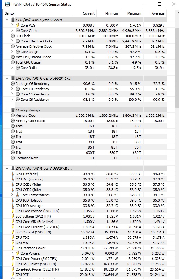 Как проверите, сбростье проц в дефолт, память можно оставить 3600, Vsoc выставьте вручную 1.05V, и посмотрите по HWInfo, какая средняя темп. в простое и CPU Core Power (SVI2 TFN), а потом в какой нибудь нагрузке, типа синебенчей. К примеру, у себя я сразу вижу по разнице температур датчика Motherboard и Tctl в IDLE, нормально или криво нанесена паста.