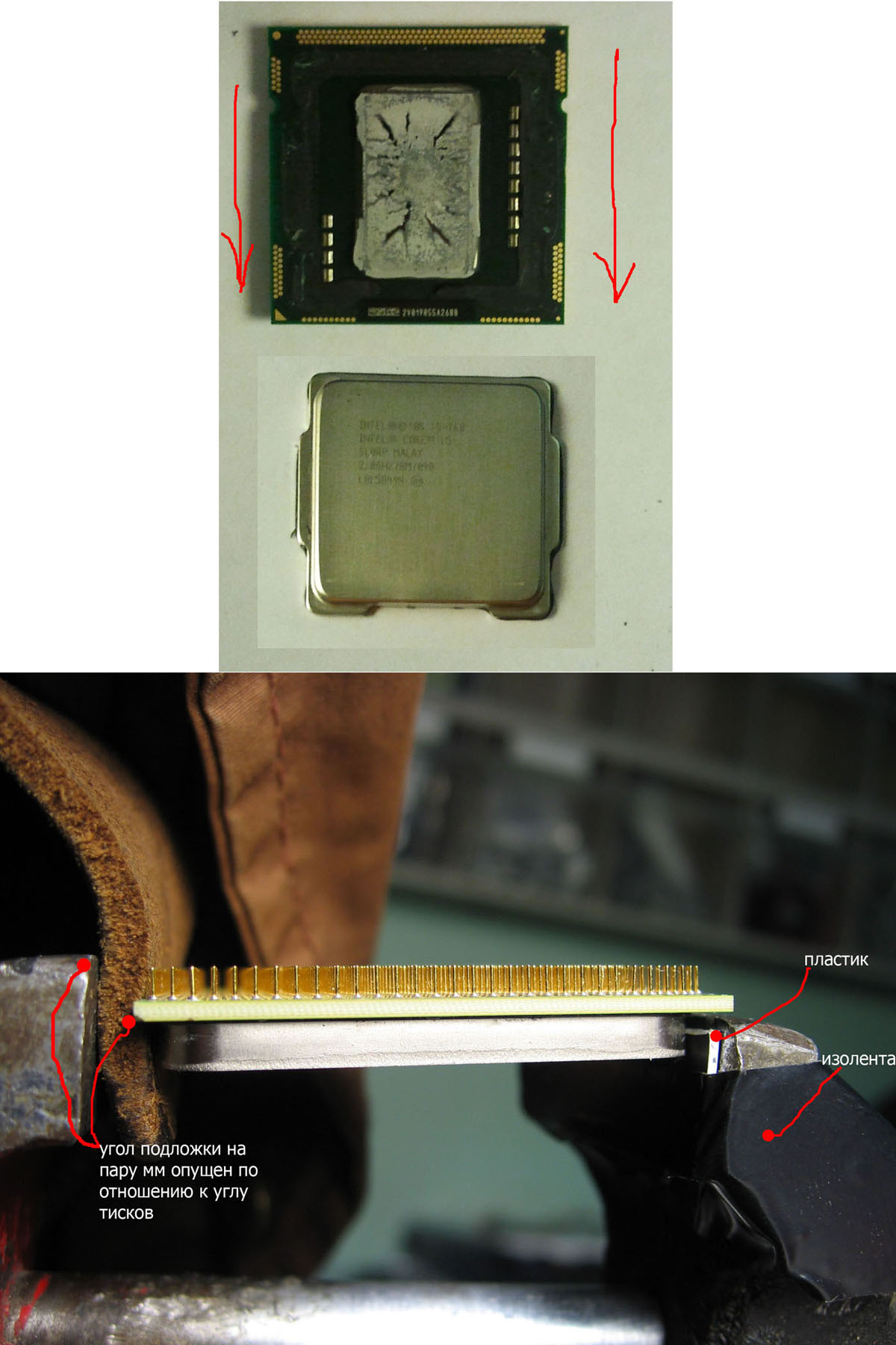 Привет, подскажите у Intel D 840 припой или термопаста , я вскрыл его кое как лезвием без тисков и не пойму что под крышкой . Вещество твердое ,присохшее , цвета серебра .С крышки внутреней я счистил отверткой , но так тяжело она отходит ,что с кристала я не решился срезать ее лезвием . Если это так термопаста высохла с 2006г то чем ее снять с кристала ,может растворителем ? А если это припой то чем его снять ? Проц после скальпа завелся ,но мне нада закончить это дело,зачистить начисто поверхность кристала или вообще не трогать ее чтобы не повредить. Посоветуйте что под крышкой , припой или паста?
