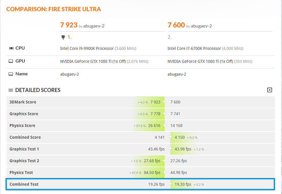 Как выяснилось, единственный "правильный" тест для 8700К и 9900К - это Time Spy Extreme, которым я вообще ничего тестировал. Но тем не менее в общем и целом картинка по имеющимся результатам тестов такая: