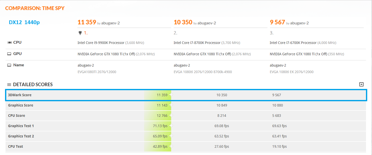 Небольшое сравнение 9900К, 8700К и 6700К в 3DMark
