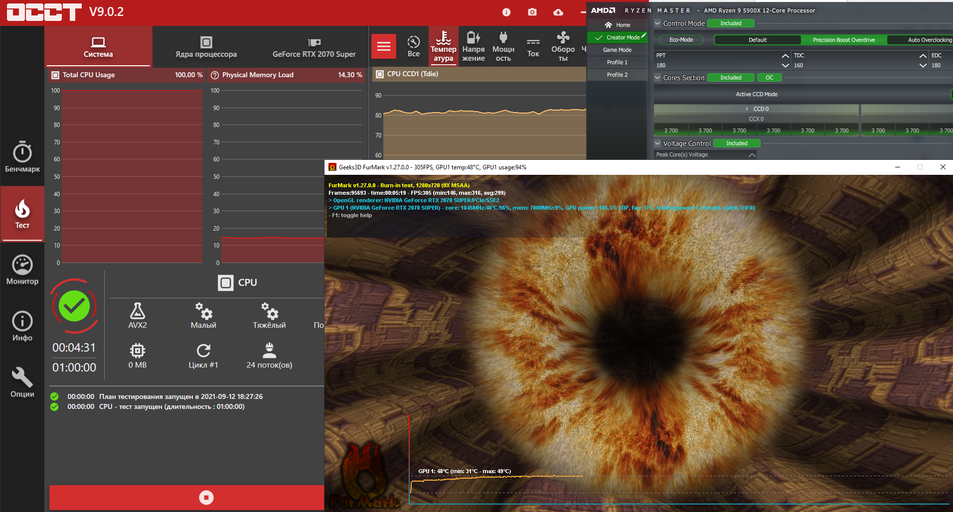 Как только нагружаю процессор, система в целом начинает подтормаживать и ярче всего это заметно на загрузке GPU, которая падает пропорционально загрузке процессора. Как будто на процессоре не хватает питания. 8 + 4 проверил, вроде подсоединены. Биос в стоке. Первый раз такое встречаю, на 9900K такого точно нет при любой нагрузке.