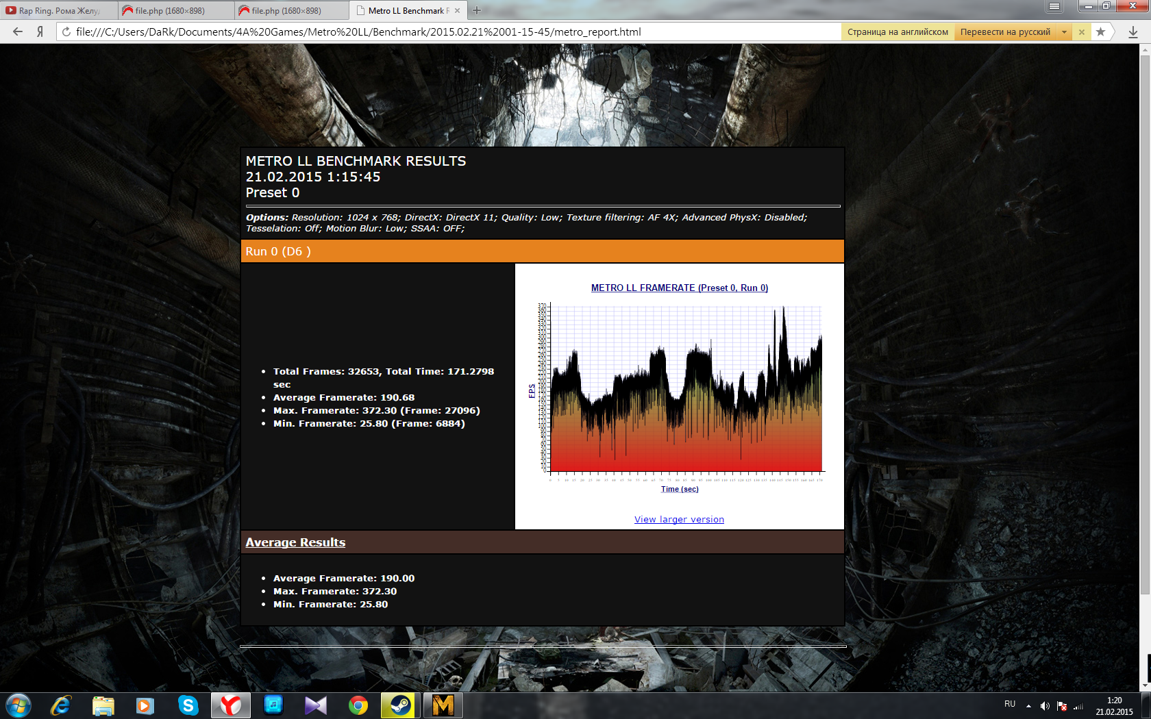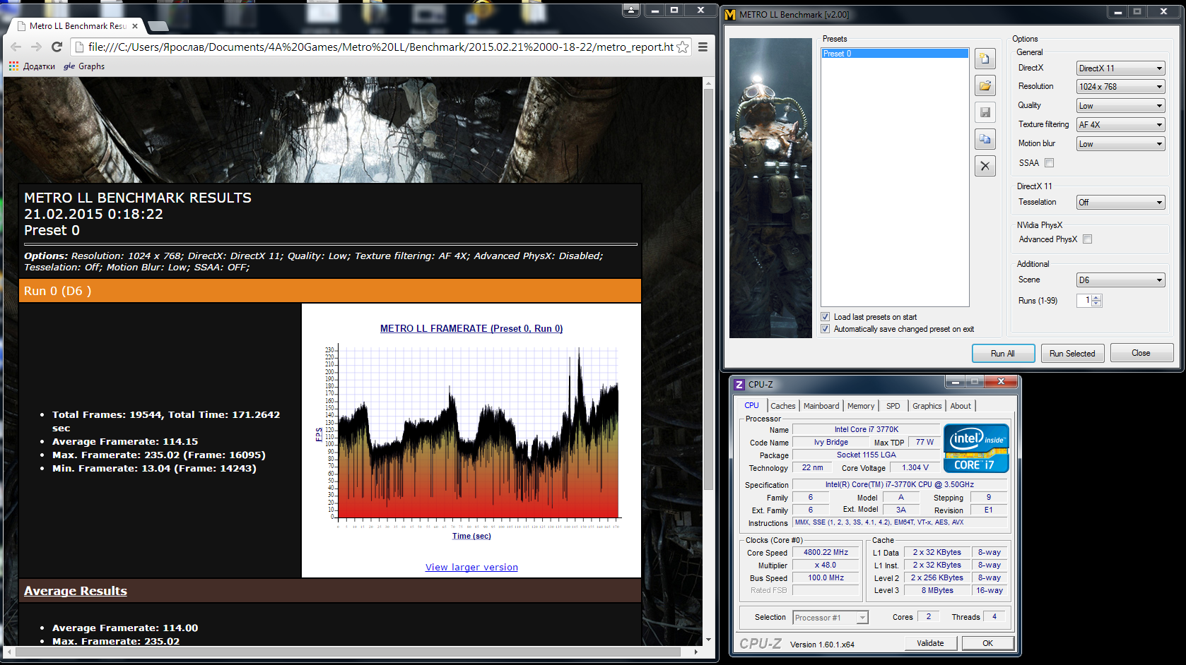 Почему я и предложил прогнать игровые бенчи но в низком разрешении без АА Можешь прогнать луч света на тех-же настройках?