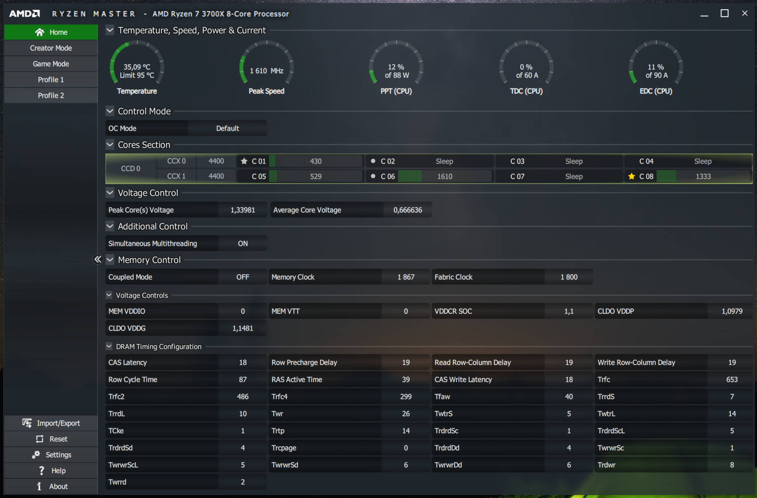 Всех приветствую. Сегодня смог наконец погнать свою память (PVR416G413C9K) до 3800, на asrock x570 taichi. До этого не вбивал параметры VDDG и VDPP. Ставил в авто. Попробовал выставить, все равно не пошло. Зашел в AMD overclockers, и вбил оба параметра там из калькулятора. (VDDG, на странице разгона нельзя поставить ниже 1.0) И память полетела сразу же с параметрами из калькулятора. Вольтажи все рекомендованные. Возможно это кому-то поможет.