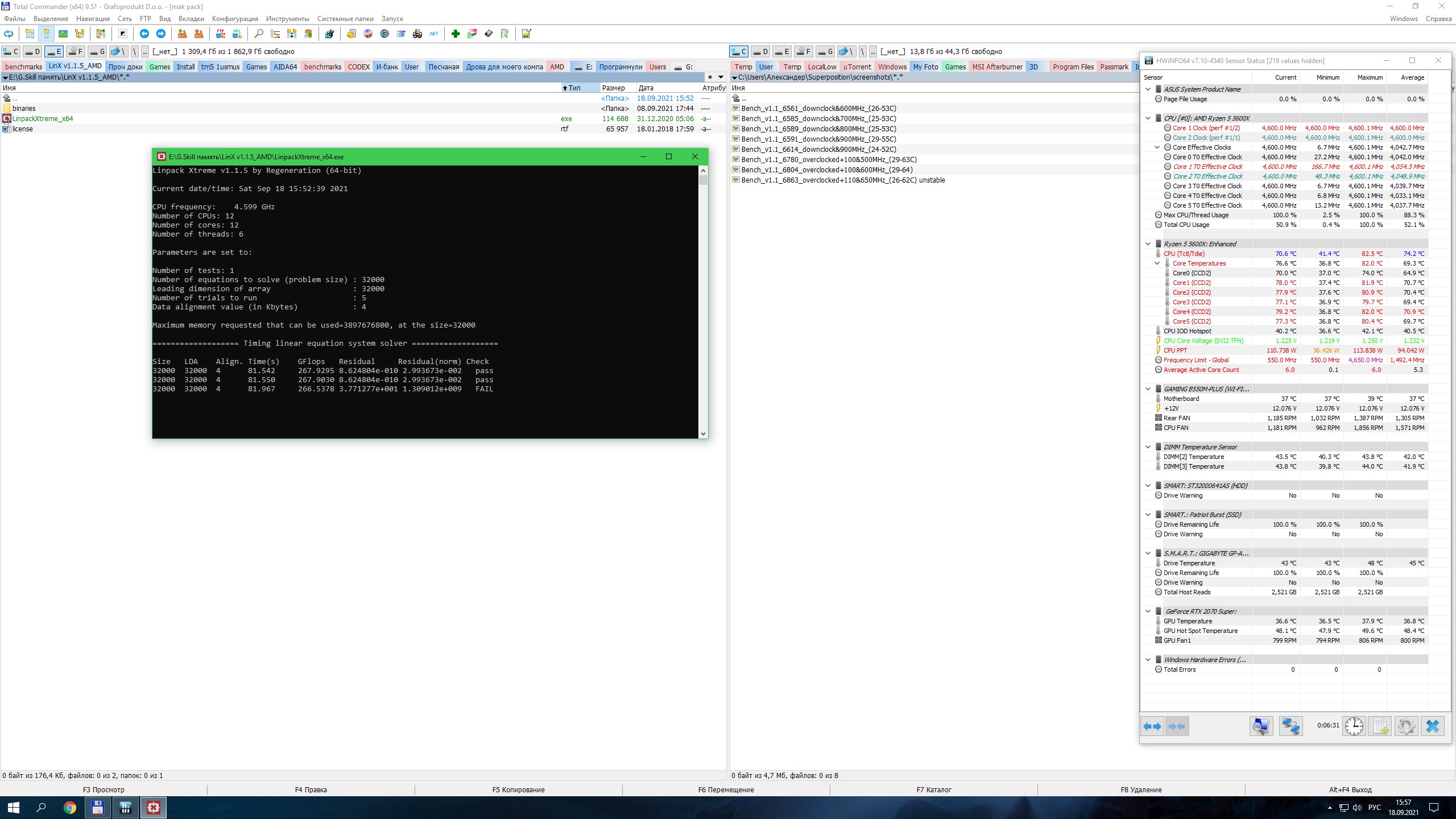 этот линпак не нагружает систему как линкс 0.7.0, в котором стабильны только 4,600ГГц с вольтажом выше для прайм95, но ОССТ с ним выдает: https://ibb.co/qFWQb9W
