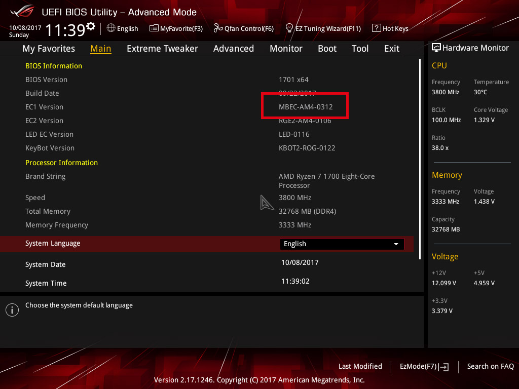 Из-за разного времени выпуска плат на каждой плате был изначально установлен свой собственный микрокод MBEC (motherboard embedded chip). Этот микрокод является ключом для тренинга памяти и стартам ОЗУ на высокой частоте. Прикол в том, что асус не предусмотрела возможности прямой прошивки MBEC при обновлении биоса. Это есть крайне хреново. Ввиду этого у нас сейчас существует 3 лагеря на кросхейре: 0312, 0310 и 9854. Последний актуальный который может гонять озу это 312. Проверяем у себя. Если мы обнаружили что там что-то другое, нам нужно найти BIOS 0096 и установить его (этот биос единственный который может перешить наш MBEC ), затем накатываем 1701. Перед установкой 0096 нужно нажать Reset (кнопка находится внутри корпуса)