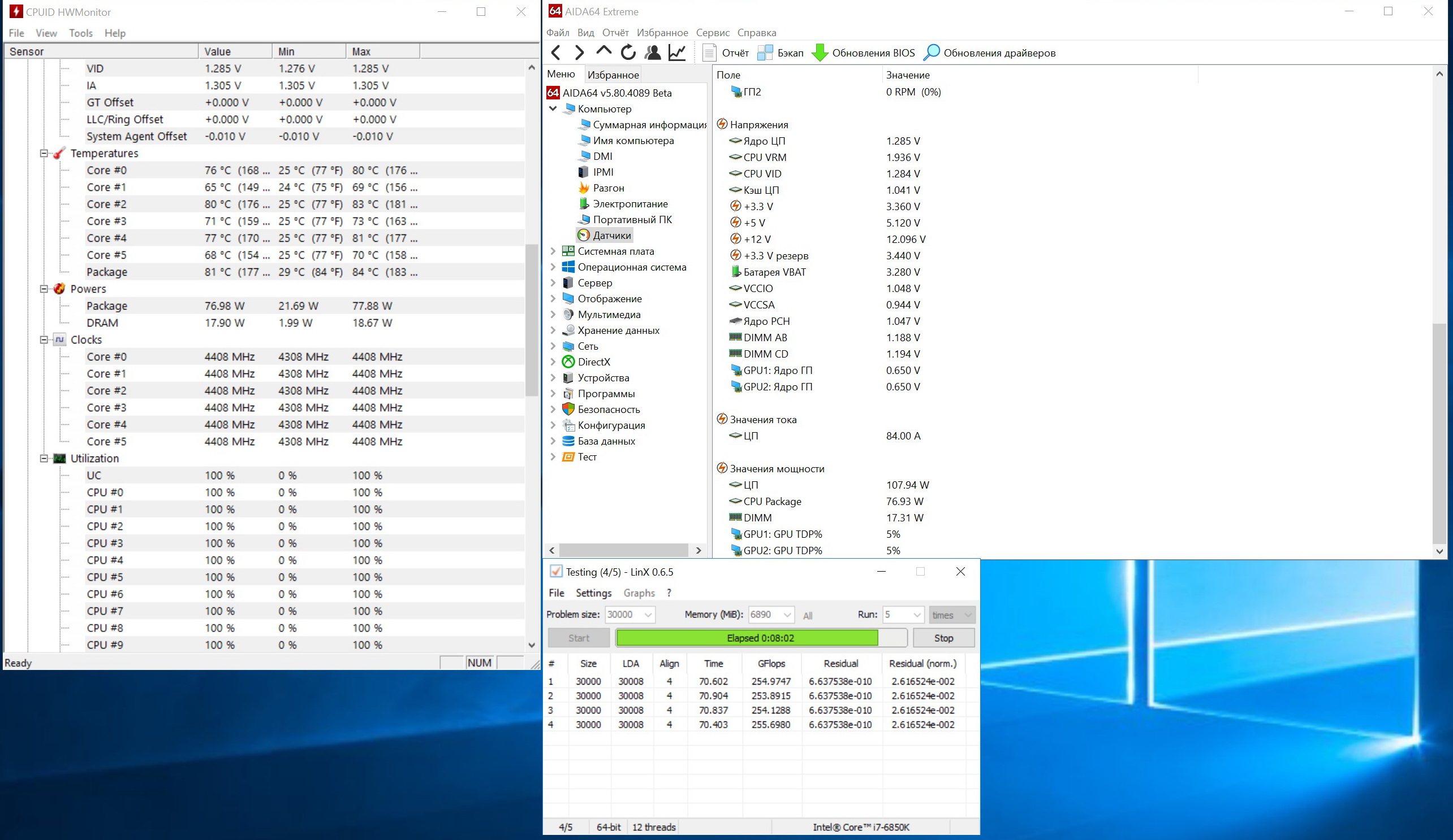 Да в LinX 0.6.5, в играх при 1500-1750 оборотах выше 41-42 градуса воды нету, самое горячее ядро 61 градус. Если уже убрать минимальные обороты до 1140, то макс температура будет где-то 70-75, а вода 45-47 градусов, но это уже после снижения разгона до 4400 Мгц и напруга 1,230