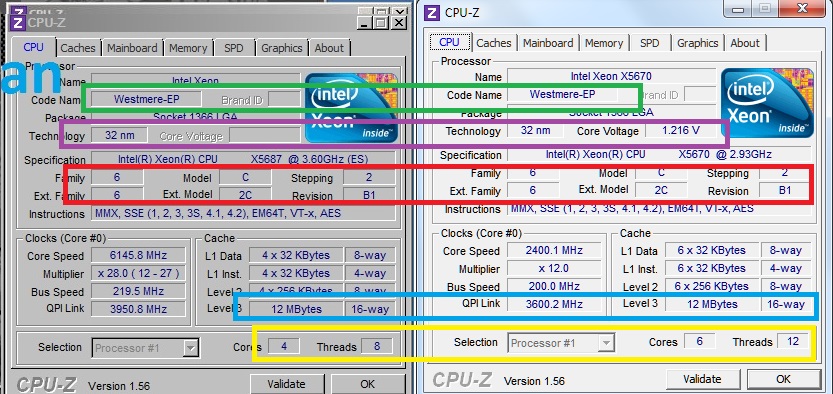 Одинаковое ядроWestmere-ep) одинаковый степпинг ядра (одинаковое кол-во кеша и набор инструкций, одинаковый тех процесс , разное кол-во ядер. Вывод сделаете дальше или вы просто придуриваетесь здесь