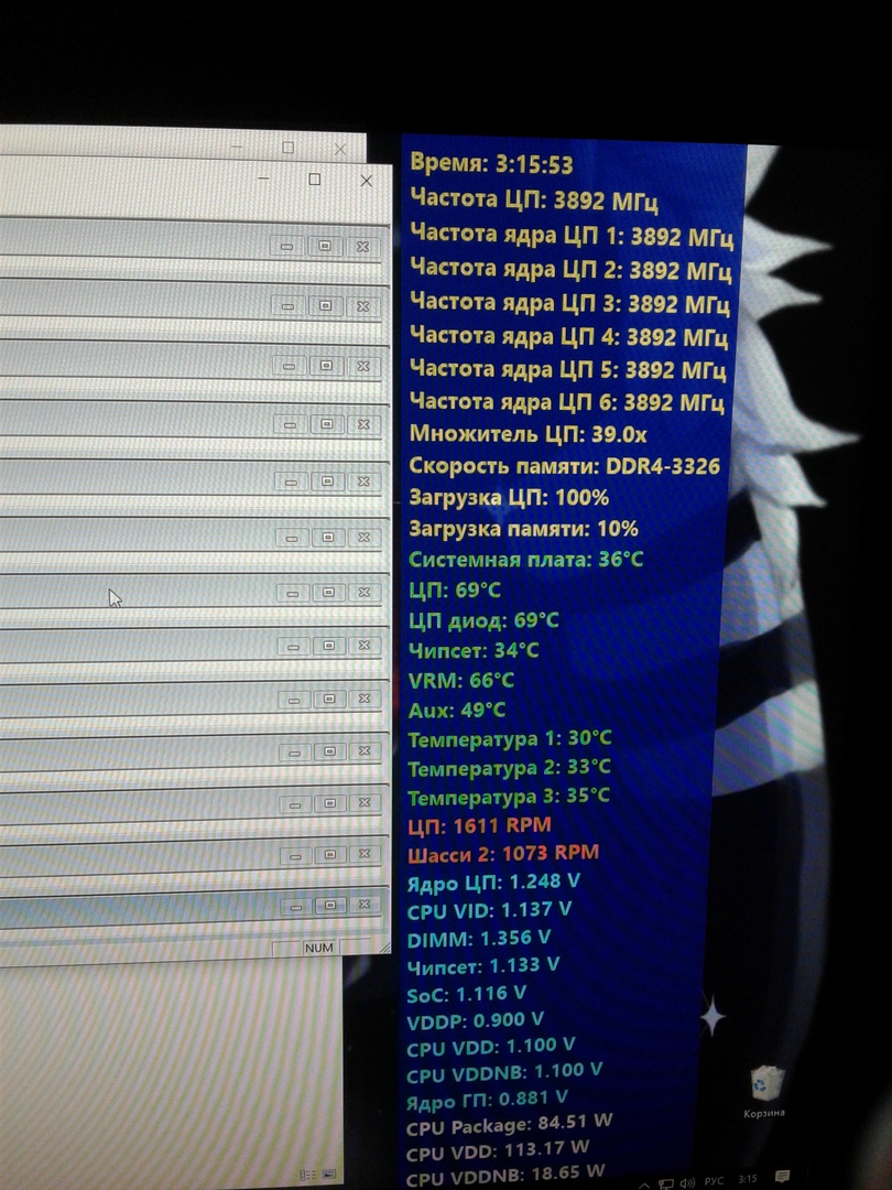 Всем доброго времени суток. На фото около 2х часов прайма (small). Нормальные ли показатели температуры и вольтажа на данных частотах? Можно ли использовать компьютер в таком режиме на постоянной основе (в основном игры, да, знаю, там будет греться меньше, просто перестраховываюсь, ибо в разгоне не особо что понимаю). Особенно интересует температура процессора и ВРМ, не произойдет ли деградация при длительном использовании? Конфиг: -Ryzen 5 2600 -Deepcool Gammax 300 -Aorus b450 Pro - память Samsung OEM BB2-CRC, 2x8. 3333 cl 16 18 18 18 36 cr1 - БП Deepcool DA 700W (12-ти вольтовая линия при такой нагрузке просаживается до 11.88, что, вроде как в пределах нормы)