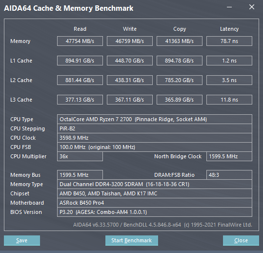 Парни, здорова! На днях взял 5600х + B550 Aorus Pro v.2 + Ballistix Red 32Gb 3600 Cl16 До этого стоял R7 2700 + AsRock B450 Pro4 и какая то AData на 3200 с 16тыми. До смены провел разные тесты. Поставил 5600х всё на авто. Провожу тест кэша и памяти аидовской и выпадаю от L3 Скорость подозрительно низкая и задержка 20n/s. Сравнил с разными значений других владельцев этого камня. У некоторых Пропуск так же ~350Gb/s, а вот латентность уже +-10 n/s. Версия аиды та-же. Может ли влиять версия биоса или же я какие-то дрова недоставил? Думаю отнести в ДНС и взять другой, но это тех сложное изделие и нужно причину придумать. Может ли вообще тест Аиды64 быть причиной смены камня? И в чем может быть проблема? Подскажите пожалуйста, знающие люди! (Тест прогонял раз 20 и всегда +- одно и тоже)