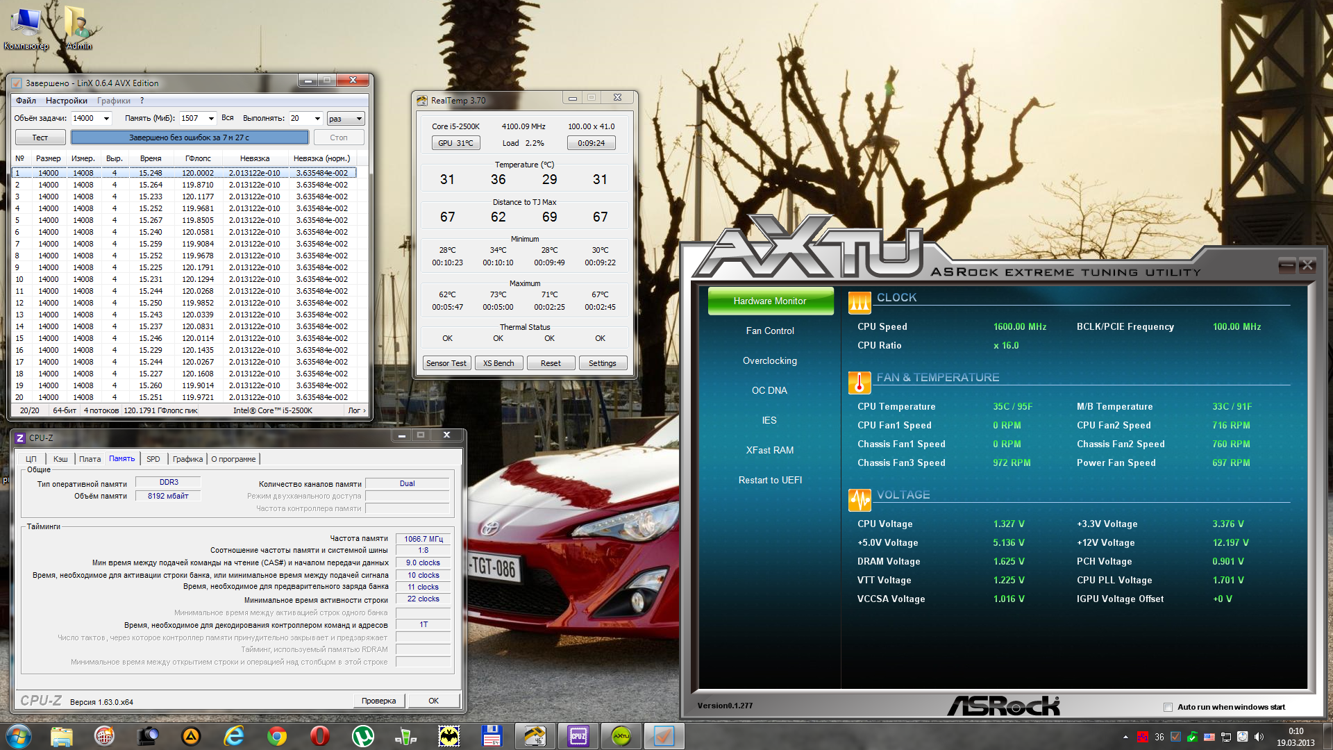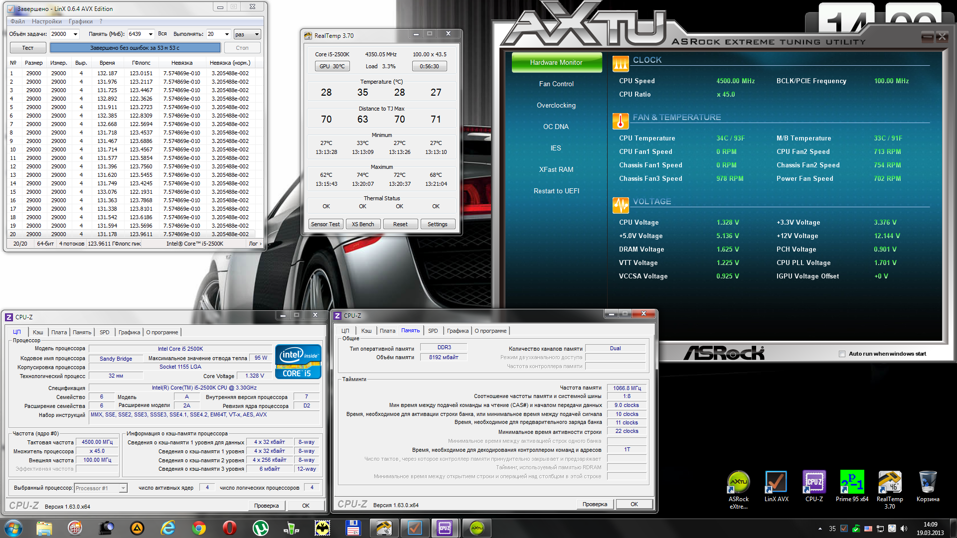 Вот мои настройки i5-2500K 4500 и памяти 2133 9-10-11-22 1T для 24/7 Prime 95 x64 в таком режиме один час - лучший тест для вылавливания глюков, LinX AVX требует меньше напряжения!