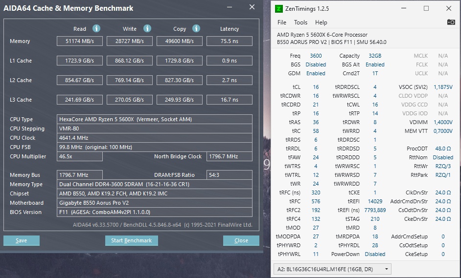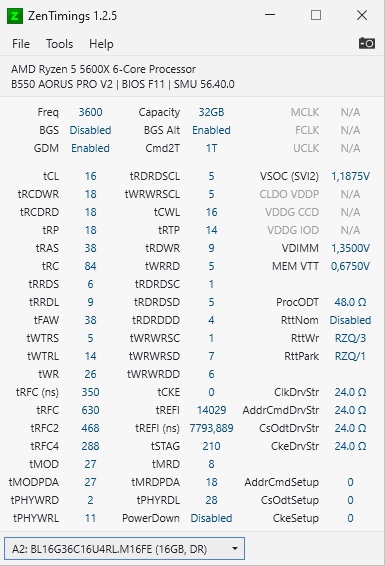 При такой задержке ставлю на то, что у вас режим FCLK:UCLK = 1:2 в общем шина IF у вас по отношению к памяти равна половине. К сожалению ZenTimings не показывает их отношение, но думаю это именно так. Заходите в БИОС и ставите руками память 3600, а IF(FCLK 1800). После этого может и не поехать, но вообще для 5600Х проблем быть не должно. А далее выжимать настройкой памяти руками.
