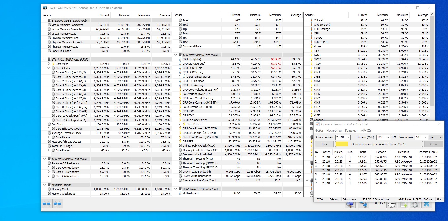 +26 в комнате, 4325 1-2 ccx 4250 3-4 ccx. 1.281 llc3. охлаждение профильное. + nt-h2 по тесту скажу так. жарит лучше 0.9.7 у него потребление до 210 доходило. тут чё то не добирает.