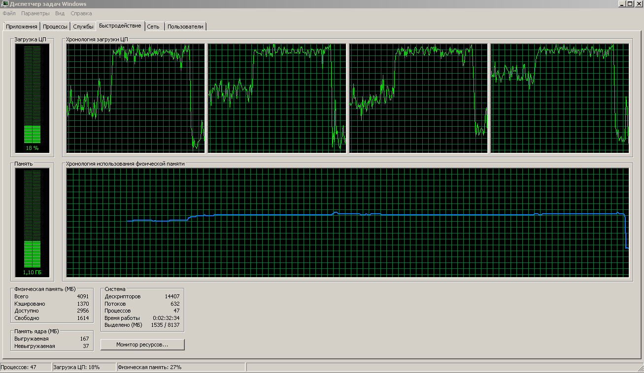 Вот к примеру вот такой кадр из Кризиса №3 с видаком 6970. В результате карточка нагружена на 50%, а проц на 85-90% По диспетчеру вот как положено: 4 ядра загружены согласно показаниям по MSI Afterbarner.