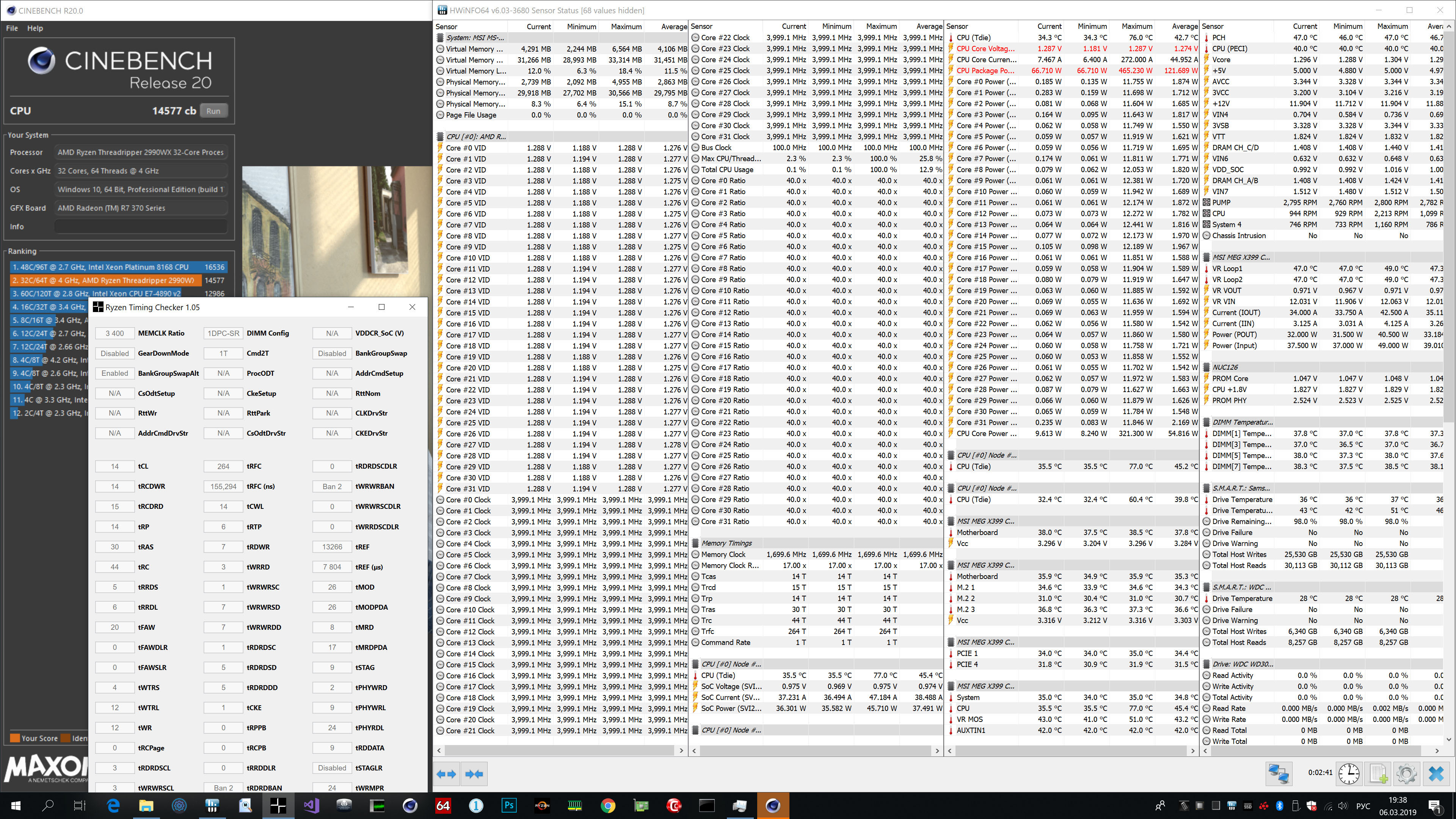проц 4.025 при 1,375в на все ядра. Вопрос до какой напруги можно подымать на все ядра? память 3200 16-18-18-38 1,35в soc 1,0в вторички взяты из калькулятора V2. Что скажете по памяти, так нормально?