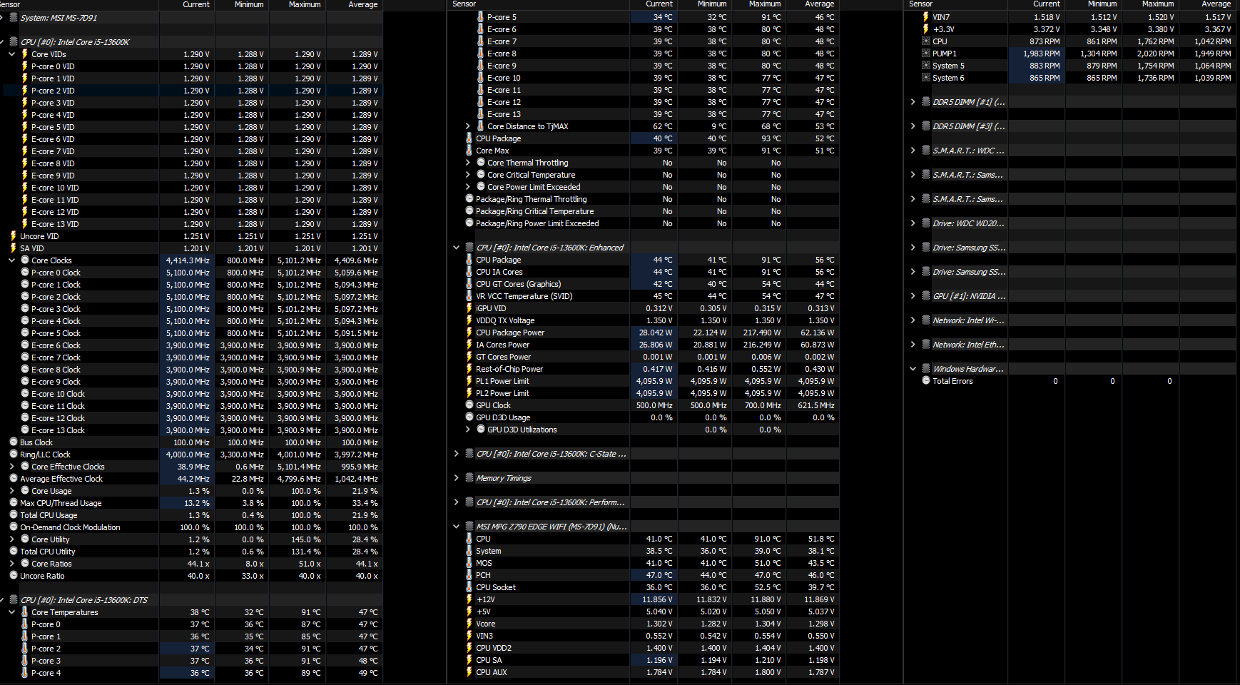Воспользовался этим гайдом https://www.overclock.net/threads/quick ... y.1802080/ дошел до 12 пункта и прогнал 10 минут в Cinebench 23 в общем вопрос стоит ли продолжать идти по нему если получил такую картинку в HWInfo? И еще заметил что у меня проседает линия 12 вольт стоит ли беспокоиться? На старом пк этот же бп выдавал стабильно не меньше 12.