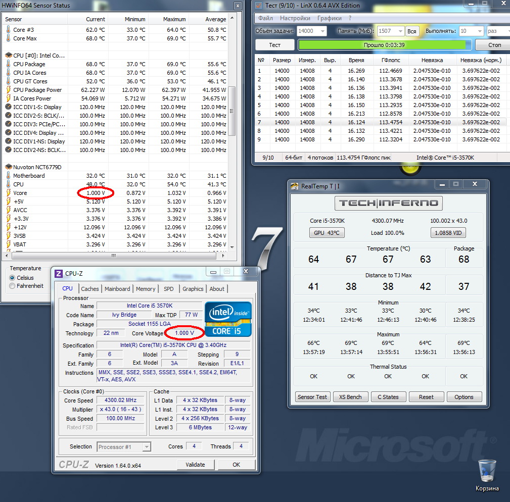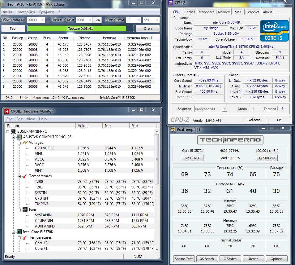 Удачный камень, весьма, пусть даже и на 4300... но после i7 меня i5 не интересует в принципе... только 3770k пока рассматриваю, но смущает темпа 90-100 на 4600, 4400 не устроит... щас по крайней мере 2600K@4600_HT on, в линксе на задаче 20000 макс темпа 80 градусов, а будет пипец...