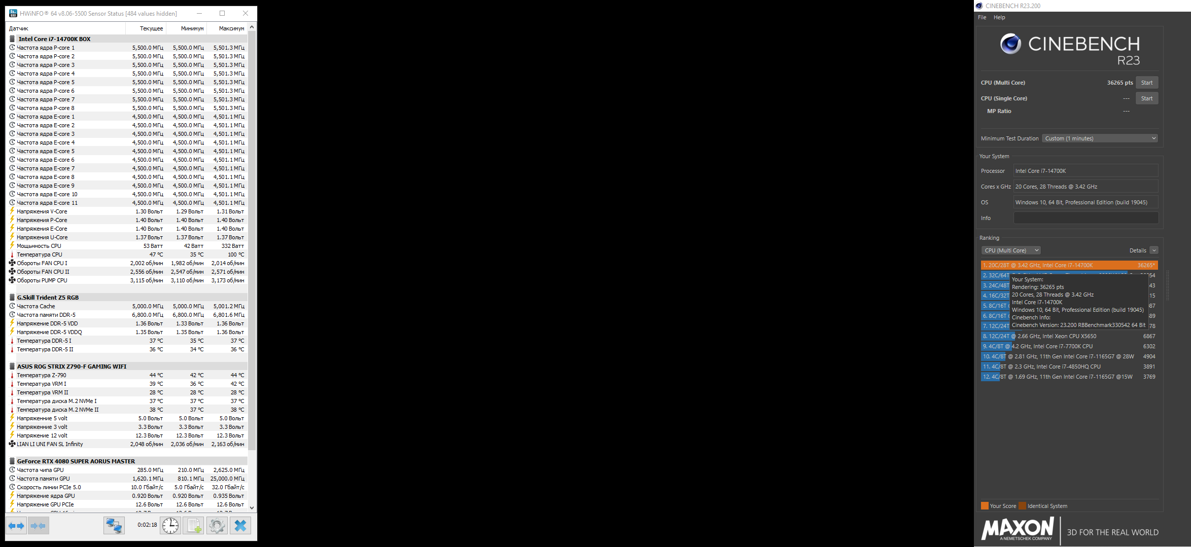 Доброго времени суток. Я тут решил проверить обновление для BIOS на 0х129 микрокод и понять что опять нам выкатели полный шлак! В итоге имеем по конфигу: 1. CPU-14700K ОС P-core 5.5 GHz, E-core 4.5 GHz, U-core 5.0 GHz @ 1.296В 2. DDR-5 G.Skill 6000 MHz @ XMP-36.36.96 1.35В, OC 6800 MHz @ 36.37.37 1.35В 3. ASUS ROG Strix Z790-F GAMING WI-FI 4. Be Quiet Dark Power 13 TITANIUM 1000W 5. DIOS 2102