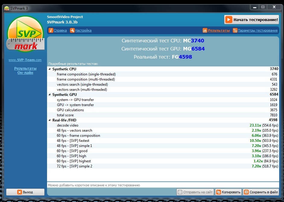 С ГПУ будут совсем другие цифры , у меня есть в фотоальбоме тест с гпу . Мы тут процессоры обсуждаем.Интересно современные процессоры спокойно тянут свп? или там типа встройка все тащит?