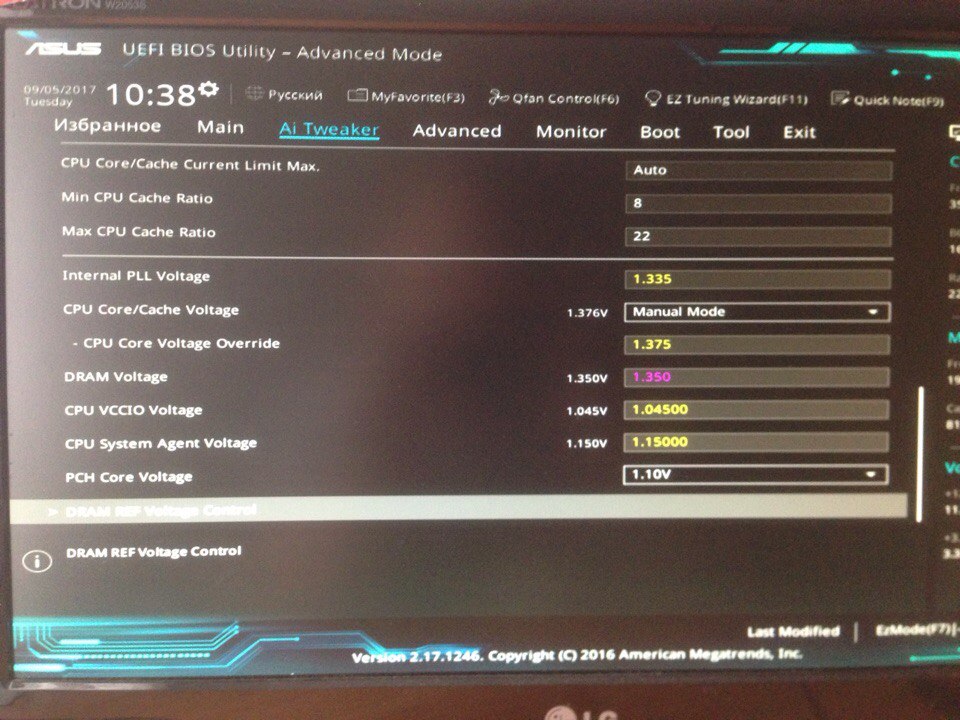В общем как не дрючился не получается взять напряжение на процессор меньше 1.375, либо синий экран либо тупо комп встаёт. Может можно с кем нибудь в вк списаться для помощи? Буду очень благодарен.