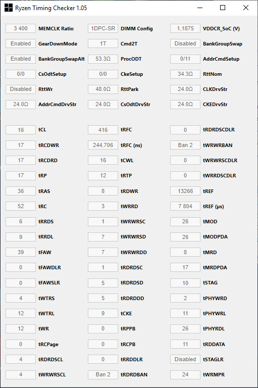 вручную вбил до FAW(включительно) + procODT 53 и tCKE 1 поставил, все остальное авто. попробуй 3533+ скорее всего все вручную надо будет выставлять из калькулятора. пс... забыл. cpu vddp все таки стабильнее с -0,020в. те с 0.900в.