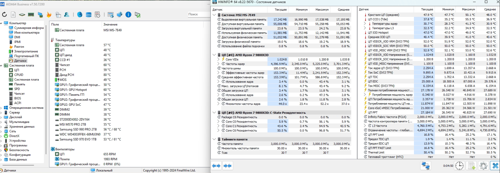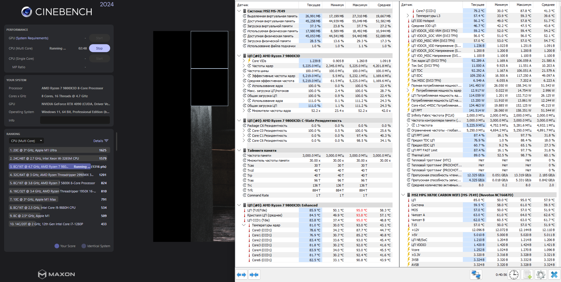 ManOfSteel У меня просто в офисе стоит 7800x3d и вот на нем темпа на 10-15 градусов меньше во всех сценариях. Поэтому возникли сомнения.. Температура ядер при этом вроде норм.