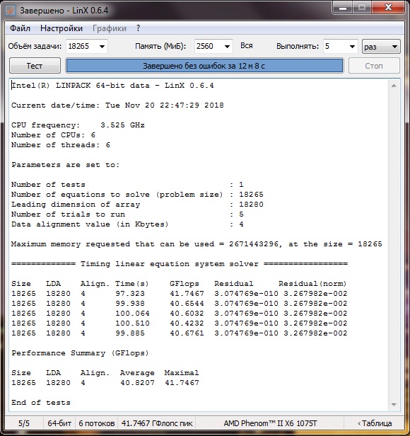 В 0.6.4 почти то же самое.PS при 3750 выдало 42 гфлопс, но тест остановлен из-за ошибки. Хотя в играх нормально всё.