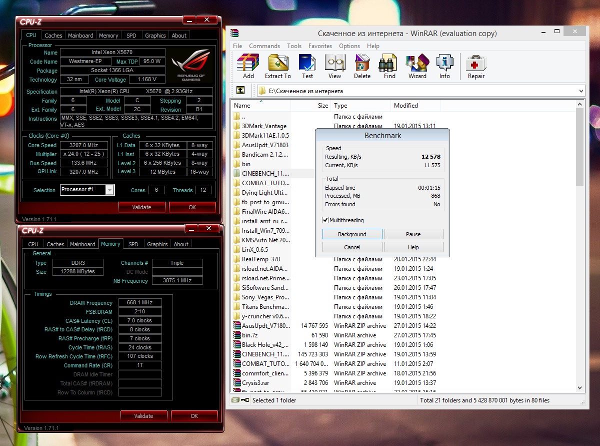 может кому интересно будет насчет винрара , вот прогнал на моей профильной машине , процессор в стоке , память 1333 мгц , разгон только кпу нб ,запилил скрин , для сравнения с фх, думал купить после тубана fx 8320 - 8350 , и мать хорошую , но цены были не дешевле , чем за бу 1366 сокет , решил рискнуть и взял 1366, жду куратора ветки Цитруса , он хотел сравнить с 1366 , но вроде уехал надолго