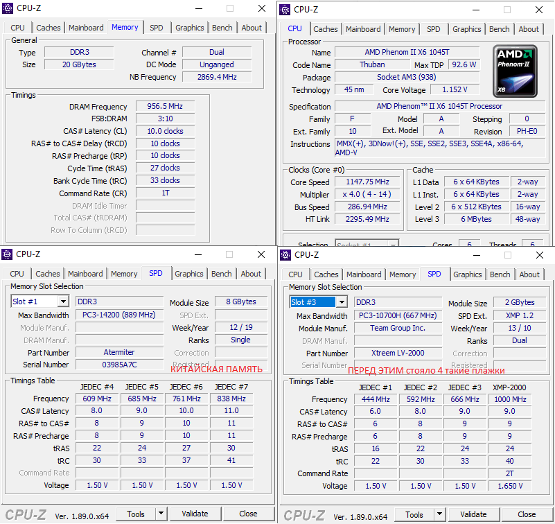 поставил 2 новых модуля по 2х8 ГБ (16 ГБ) и 2 старых 2х2ГБ (4 ГБ) итого имеем 20ГБ памяти ...