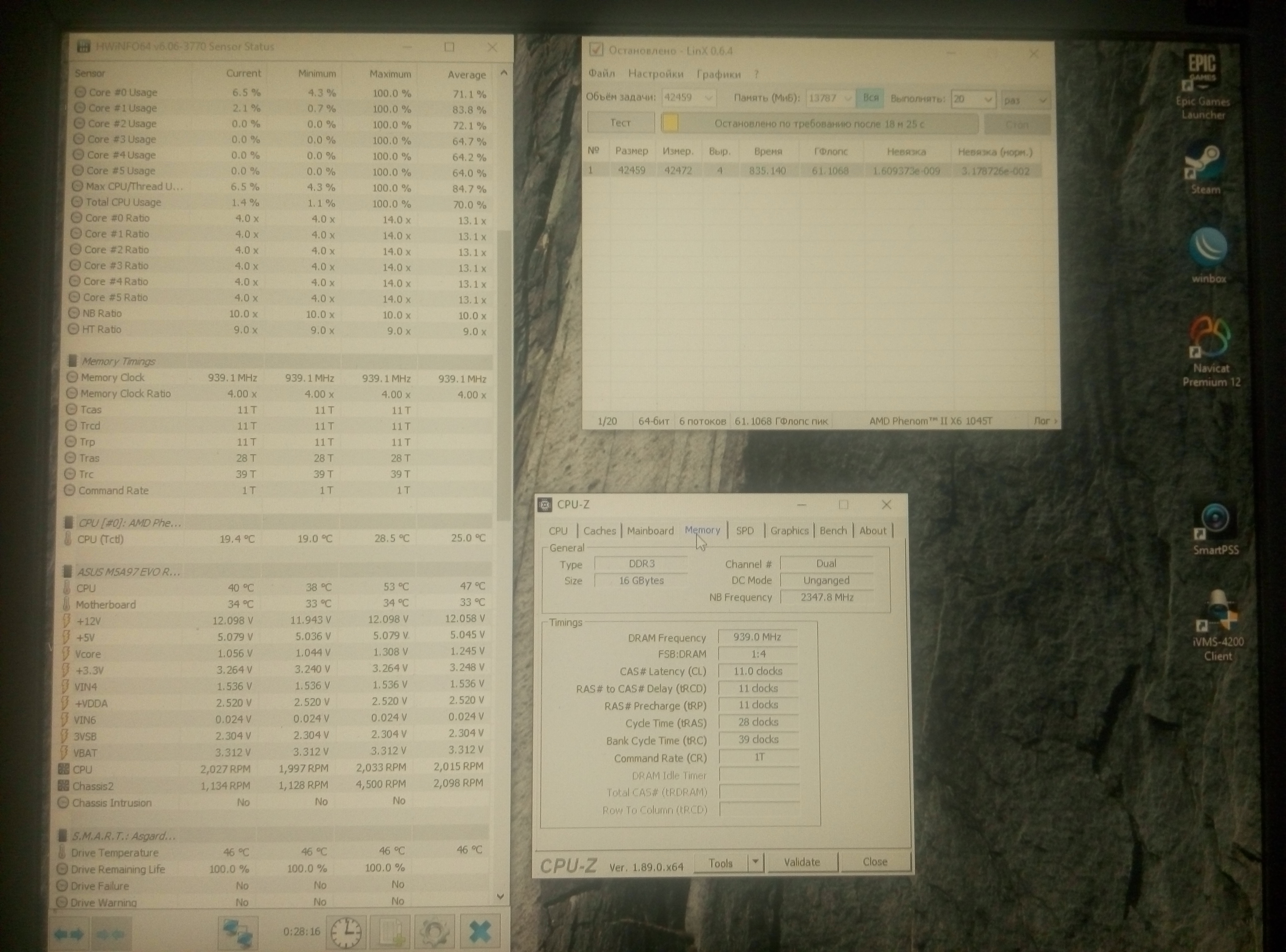 Linx проходит без ошибок (5 заходов) но хешрейт низкий походу перегрев ...