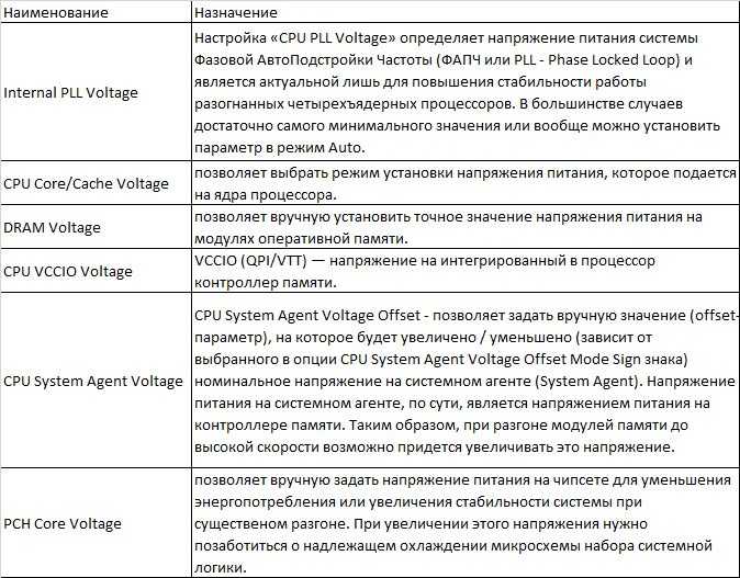главный вопрос: откуда мы берем напряжения CPU VCCIO Voltage, System Agent Voltage, Internal PLL Voltage, PCH, VCC Voltage?
