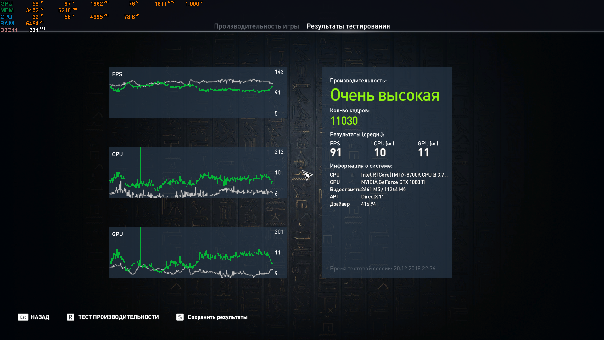 Да я не против, только такой тест должен называться "влияние разгона цп, памяти и первичных таймингов на производительность с 1080ти в разрешении ляляля", а не тест прироста от разгона памяти и цп. Люди, которые сидят на 2080/ти будут введены в заблуждение такими тестами, и снова по интернету разнесется, что память ничего не дает. Разгон памяти даёт прирост процессорной части, значит и тестировать нужно её. По вашему тесту выходит, что 8700к в фулл разгоне на 10% мощнее райзена1600, однако очевидно, что разрыв гораздо больше. Возможно сейчас тест в 720р будет бесполезен, но это сейчас. Поиграйте в одиссею, там уже без разгона не все так гладко будет. А через год игры ещё выйдут, и проц со слабой памятью просто будет мусором, а с сильной -проявит себя. Тесты процессора/памяти с упором в видеокарту актуальны ТОЛЬКО!! если у вас есть самая мощнаявидеокарта на текущий момент. И как только выходит более мощная видеокарта, эти тесты моментально становятся ненужным дезинформирующим инфомусором. 2080ти, если что, уже вышла. Делайте выводы.