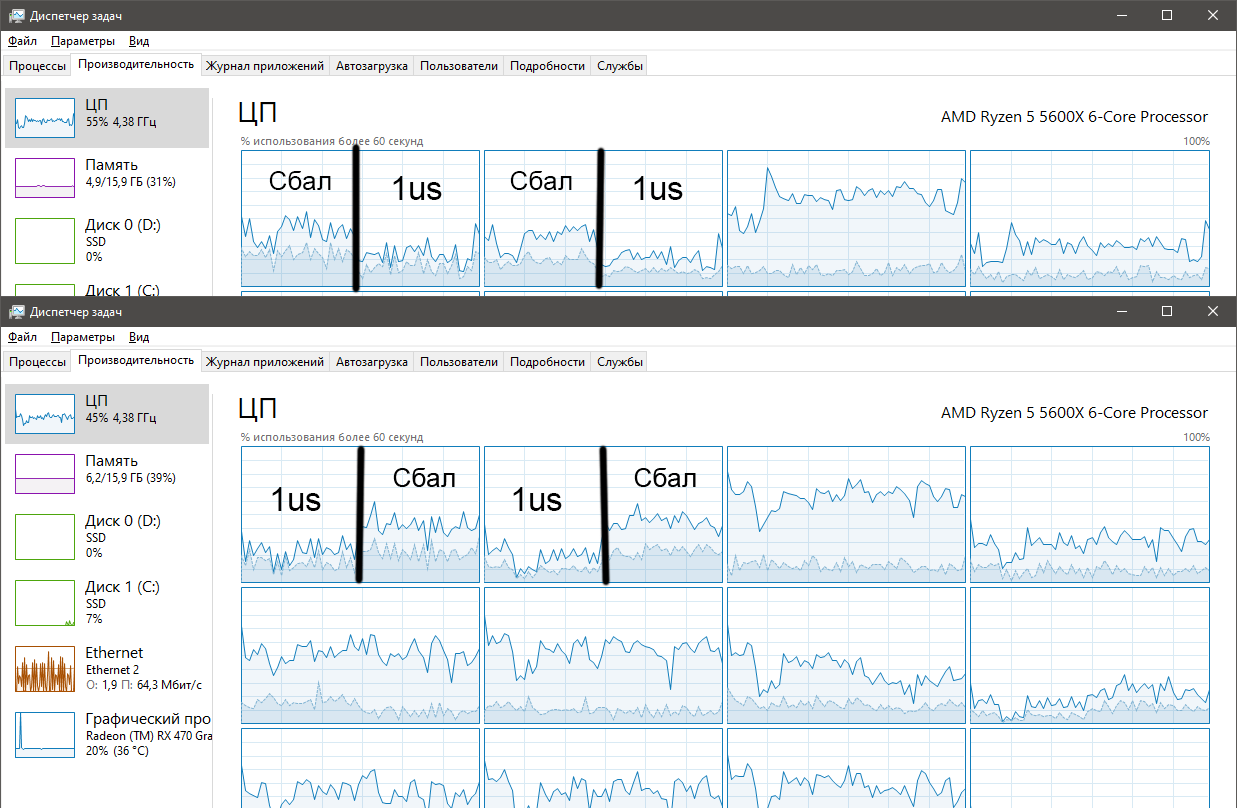 WallterScott вот нагрузка при воспроизведении 8К на самое худьшее у меня ядро при смене с одного на другой профиль. И такое повторяется каждый раз, это не случайное совпадение. В бенчах типа СВ или CPU-Z так не получается, они сами скорее всего указывают, CPU-Z например в первую очередь использует физический (первый у ядра) поток. Разницу тут нельзя списать на погрешность.