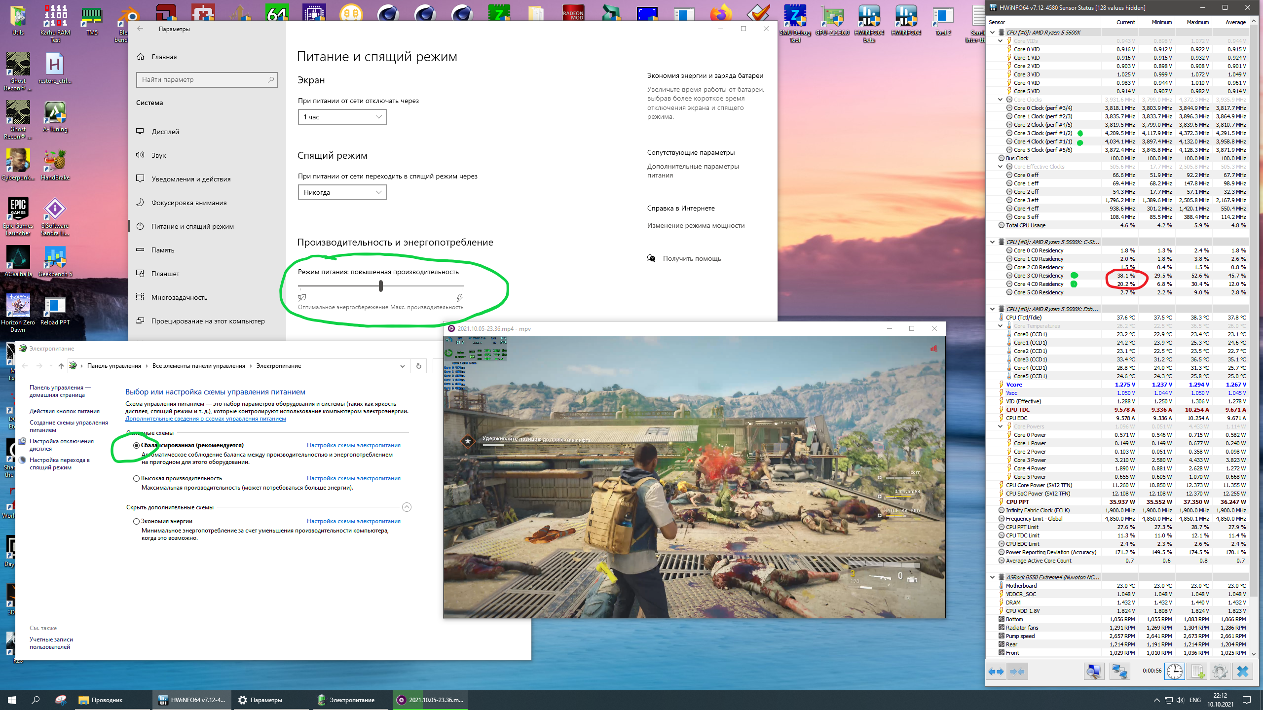 По вашему скриншоту вообще непонятно, где там какая нагрузка. Почему 55% - то? Это 8K слайд-шоу так грузит? Если 1-е ядро худшее, то правильно все на скрине. Вот так должно быть настроено питание, никаких лишних говнопланов, и загрузка при проигрывании (1440p h264):