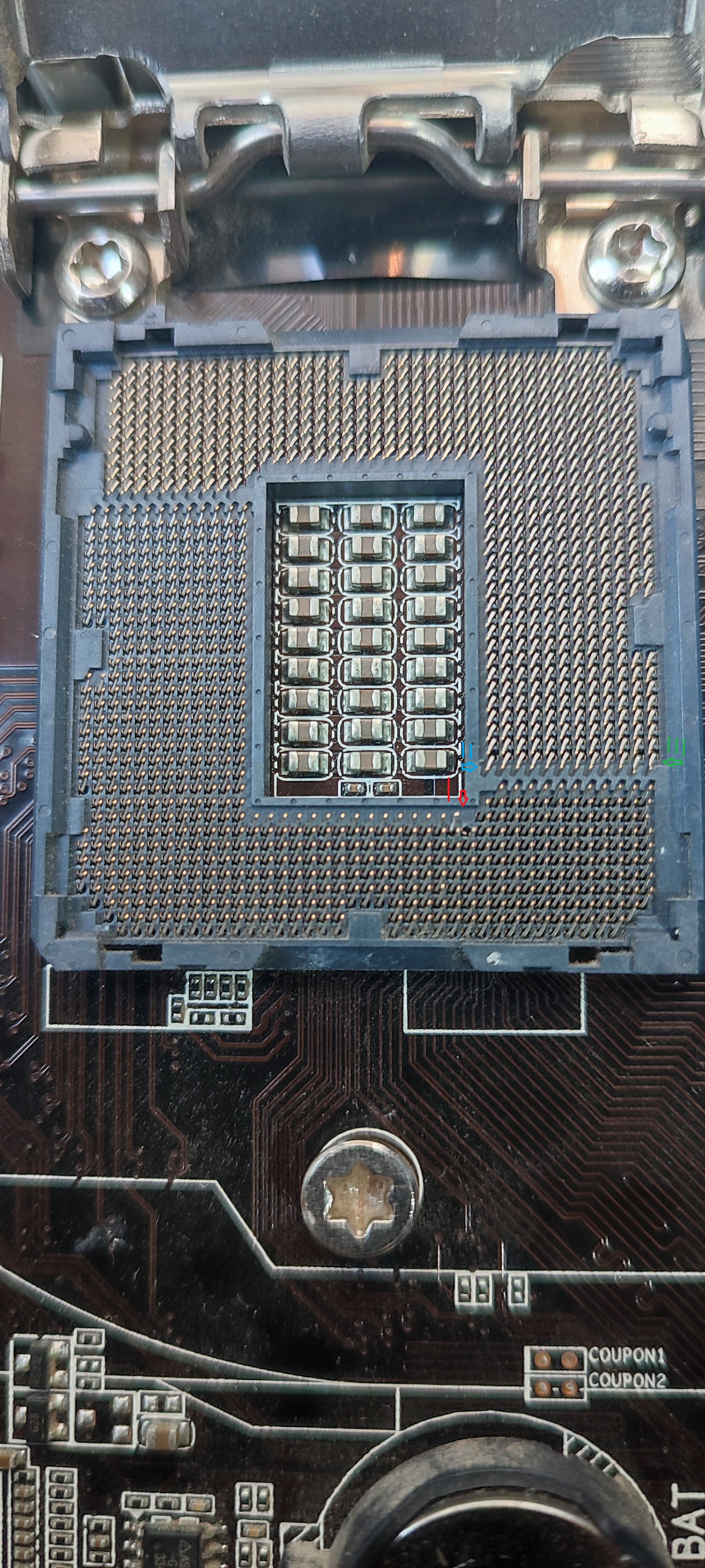 Доброго времени суток. У меня полгода была проблема - ребутался комп, когда долго играл, без всяких писков и прочего, затем началась проблема: комп включается, но нет изображения (также нет никаких лишних звуков), прогружается до рабочего стола (судя по стандартному звуку виндоус) и все пустой экран, помогала перезагрузка несколько раз и изображение появлялось с самого запуска компьютера, а неделю назад перестало выдавать изображение и уже перезагрузка не помогает. Решил снять процессор проверить и обнаружил гнутые ножки в сокете материнской платы, своими силами выправил их, хоть и 2 из них так и не удалось норм выправить, опишу ниже что с ними не так. Неделю компьютер работал практически идеально, не было такого чтобы без изображения прогрузился, правда были ребуты во время игры, но вчера он начал снова прогружаться без изображения. Когда я снова снял процессор, то увидел что ножка, на фото отмечена № "I", снова погнулась, попытался ее выравнять с ее рядом и она просто отломилась; ножка № "II" немного выступает среди прочих ножек, не знаю критично ли это; ножки под номер "III" просто немного кривоваты, никак не могу их выправить. { № I, II, III - отмечены ножки на фото "сокет1150.jpg"} Судя по распиновке: 1) ножка, которая отломилась (№ "I"), является "RSVD"; 2) ножка № "II", как я понимаю, является "VCC"; 3) ножки N "III", тоже VCC. Ответьте пожалуйста на следующие вопросы: 1) Могло ли у меня из-за этих ножек быть вышеперечисленные проблемы? 2) Стоит ли без ножки №"I" ставить процессор и включать компьютер или сгорит? Моя материнская плата: Gigabyte GA-H81M-DS2V, сокет 1150. Спасибо за помощь!