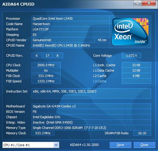 В. Как Xeon в разгоне? О. Все индивидуально (любой разгон лотерея), но большинство разгоняются неплохо. В принципе, если материнская плата позволяет, то 45nm quad core процессоры легко разгоняются по шине с 333MHz до 400MHz на стандартном или незначительно повышенном напряжении. Статистика тут.