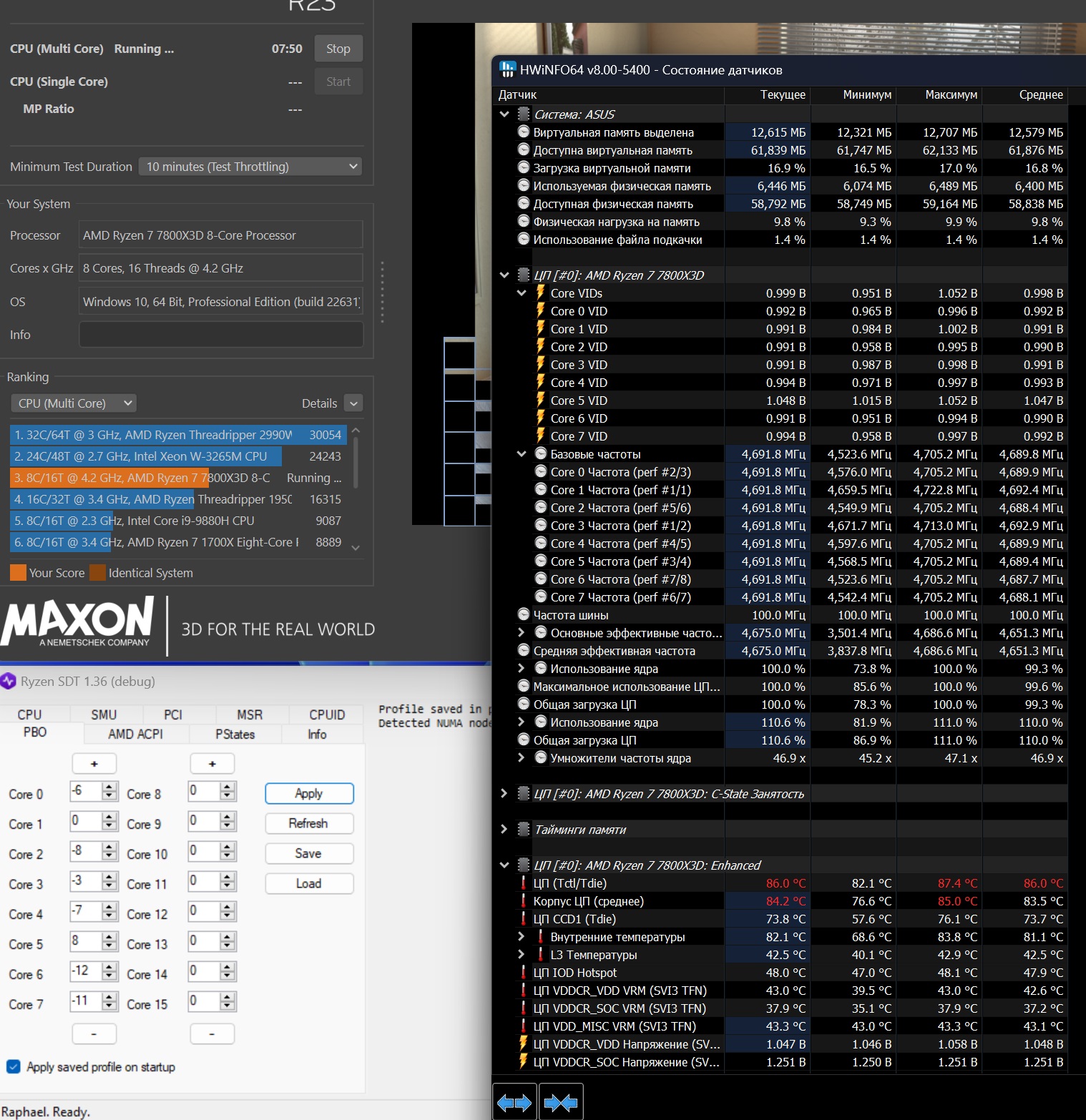 Итого производительность при разгоне всего в общем можно поднять где-то около "+23%" по сравнению со стоковыми настройками.