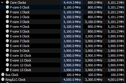 Это HWinfo так показывает Core Clocks вот так это выглядит если развернуть. К слову забыл что когда тот скрин делал было Р 5.2 а Е 4.0