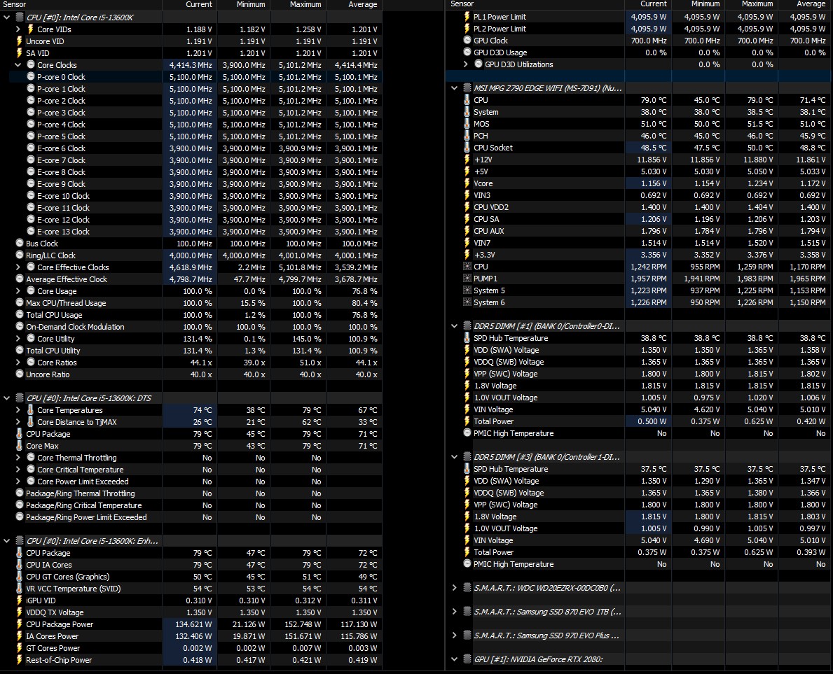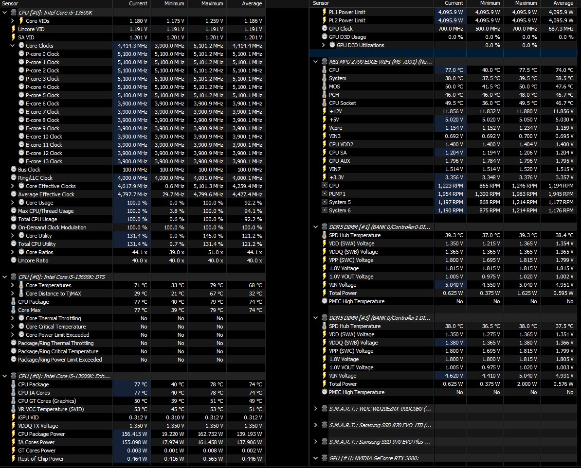 если акутальная частота 4,5, то как-то многовато 1,244 для такой частоты. Я бы ожидал не выше 1,15-1,18, учитывая, что 13600 не топ по качеству чипа. 1,25 - много. И разрыв между макс vcore и в нагрузке отсутствует, судя про скрину. Это не нормально, если это так. И значит, что vdroop околонулевой.