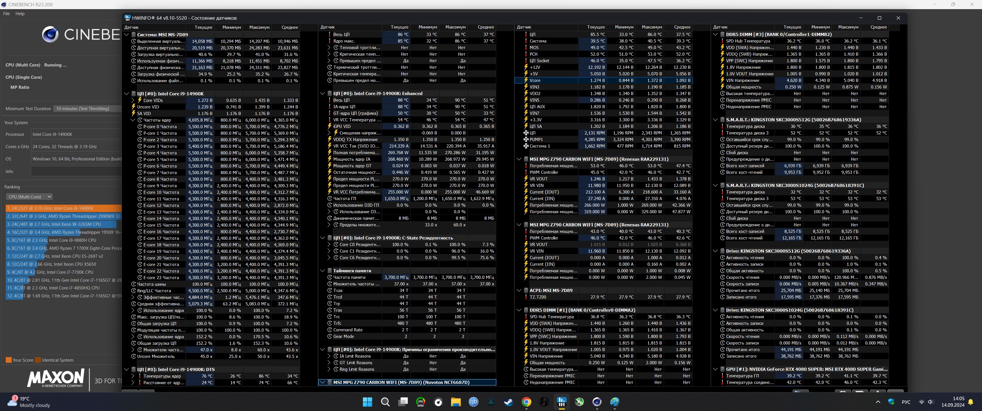 Всем привет. Нужна консультация/ликбез/разъяснения. В общем, решил наконец-то сделать андервольтинг для своего 14700KF - итогом стало понижение температуры градусов на 10 при прогоне geekbench 6 и потребление в ваттах упало до 197. При этом потери производительности практически не произошло. В Cinerbenc23 теперь не постоянно в сотку упирается, а изредко. Вроде, результат устраивает, но есть вопрос. DVID установлен в -0,05. Если пытаюсь установить его еще меньше(например, -0,1), то все продолжает работать стабильно, производительность на все ядра фактически не падает. Но производительность на одно ядро просто катастрофически деградирует с 3000 до 1200 (Geekbench 6). Не пойму в чем дело. Что я сделал не так? (Да, и вообще, может не правильно какие настройки выставил - гайда именно по гигабайту не нашел что-то) Вот что изменено на текущий момент: Версия биос - F11d intel default settings - perfomnace Dynamic Vcore(DVID) - -0,5 CPU Vcore Loadline Calibration - high CPU Vcore Current Protecyion - high IA VR Config Enable - enabled IA VR Voltage Limit - 1450 IA CEP - disabled