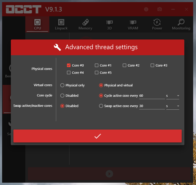 Вообщем тоже самое, что и скрипт Corecycler, только из OCCT. Там нужно в advanced переключить "threads":