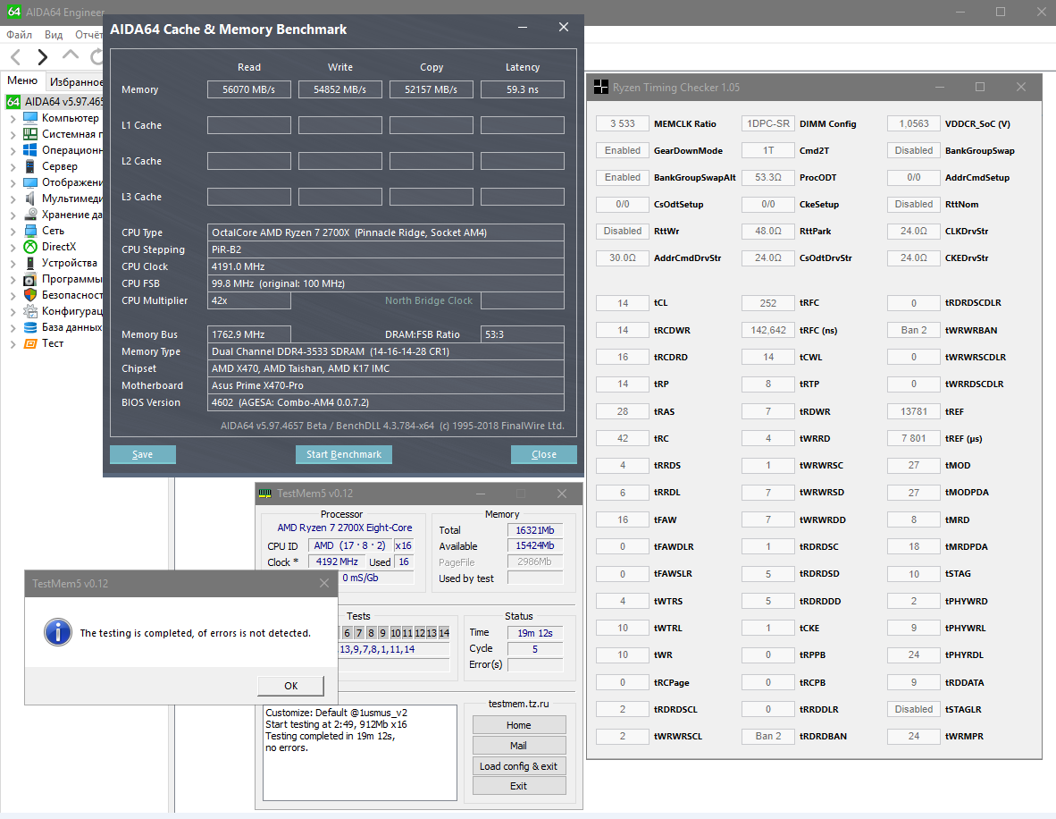 Новый биос 4602 с агесой 0.0.7.2 для Asus x470 prime благотворно влияет на разгон памяти (во всяком случае для меня). Смог взять 3533@14-16-14-14-28-42, хоть и работает всё это дело при 1.5v. Раньше вообще ни в какую, сыпало постоянно ошибками. + на один шаг дало снизить напряжение на cpu без последствий.