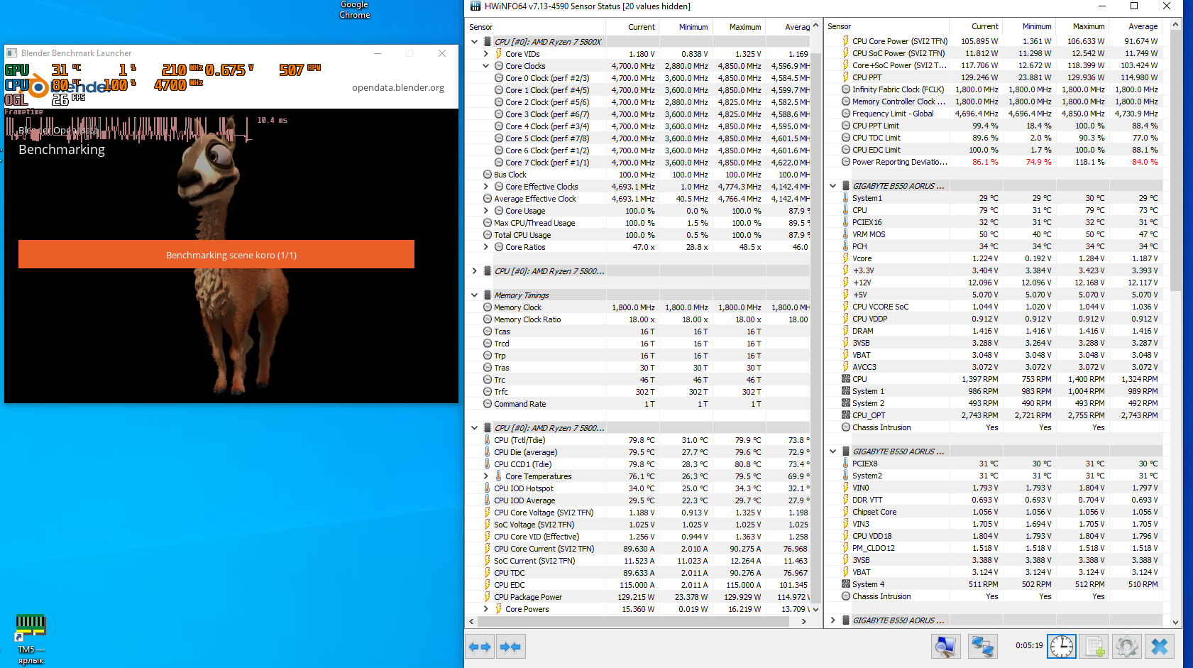 А также курвой -30 на все ядра и минусовым офсетом -0.048v(без падения производительности) получились частоты выше чем были в фиксе, было 4700 фикс, теперь 4750-4800 с PBO в нетребовательном многопотоке, очень хороший буст по частотам и температурам дал минусовый офсет, я раньше с другой платой с ним уже эксперементировал, но падала производительность, забил, а на B550 AORUS PRO V2 вернулся к этому вопросу, до -0.048v всё ок по балам в бенчах, проверял в CR23, CPU-Z, Corona1.3.Benchmark, Koro, больший офсет уже падение производительности. Теперь частоты в синебенче с PBO, курвой и офсетом 4800 в начале, и под конец бенча ~4750, остался самый длительный тест, понаблюдать в простое, сёрфинг в нете, ютубчик, так как могут быть сюрпризы