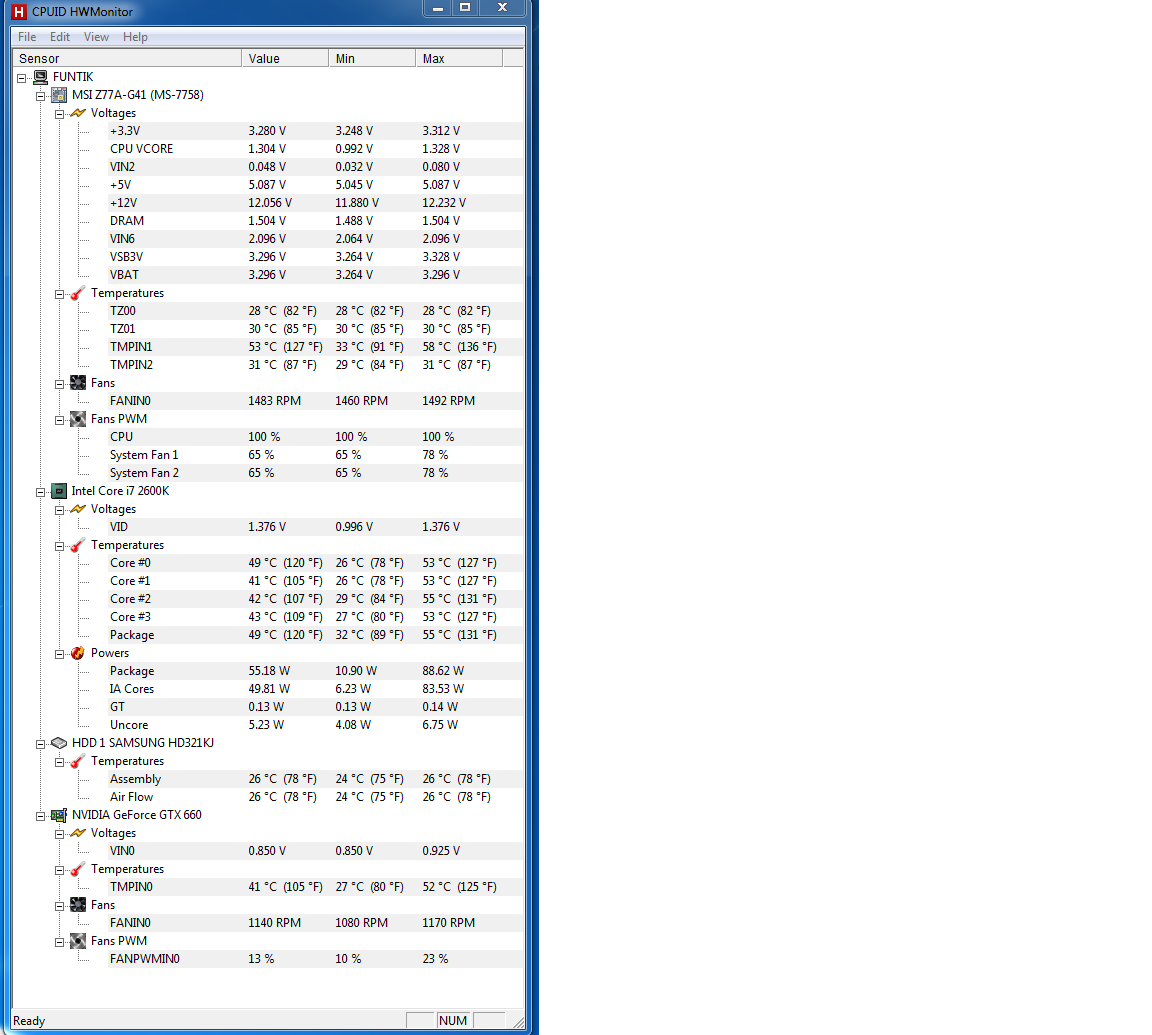 Проверяю при помощи HWMonitor, и значения у меня такие, на скриншоте отражены.