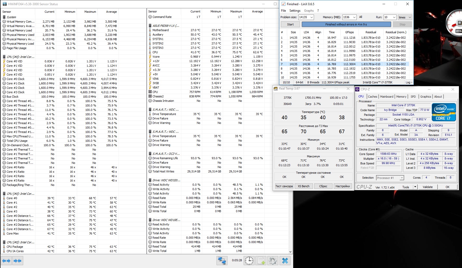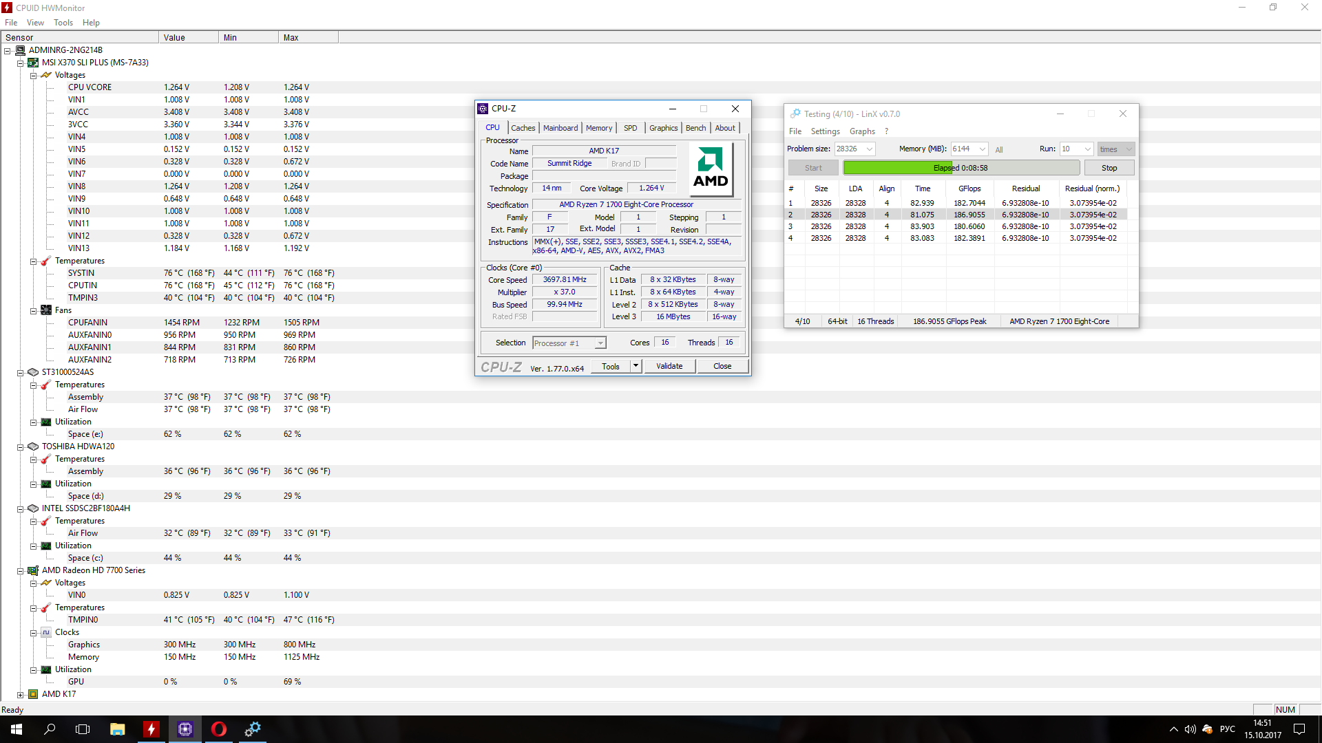 Собрал платформу и посыпались вопросы) память (Samsung c-die) разогнал через Memoty Try it (DDR4-3066 16-18-18-18-38), напругу поставил руками 1.3, прогнал линкс и все ок пошел гнать камень, выставил множитель х37, напряжение 1.25, но при прогоне смутили температуры и я остановил тест. Подскажите насколько все плохо?) Кулер сейчас Scythe Kotetsu, могу поставить Ninja 4. Ну и вообще все ли я делаю правильно?