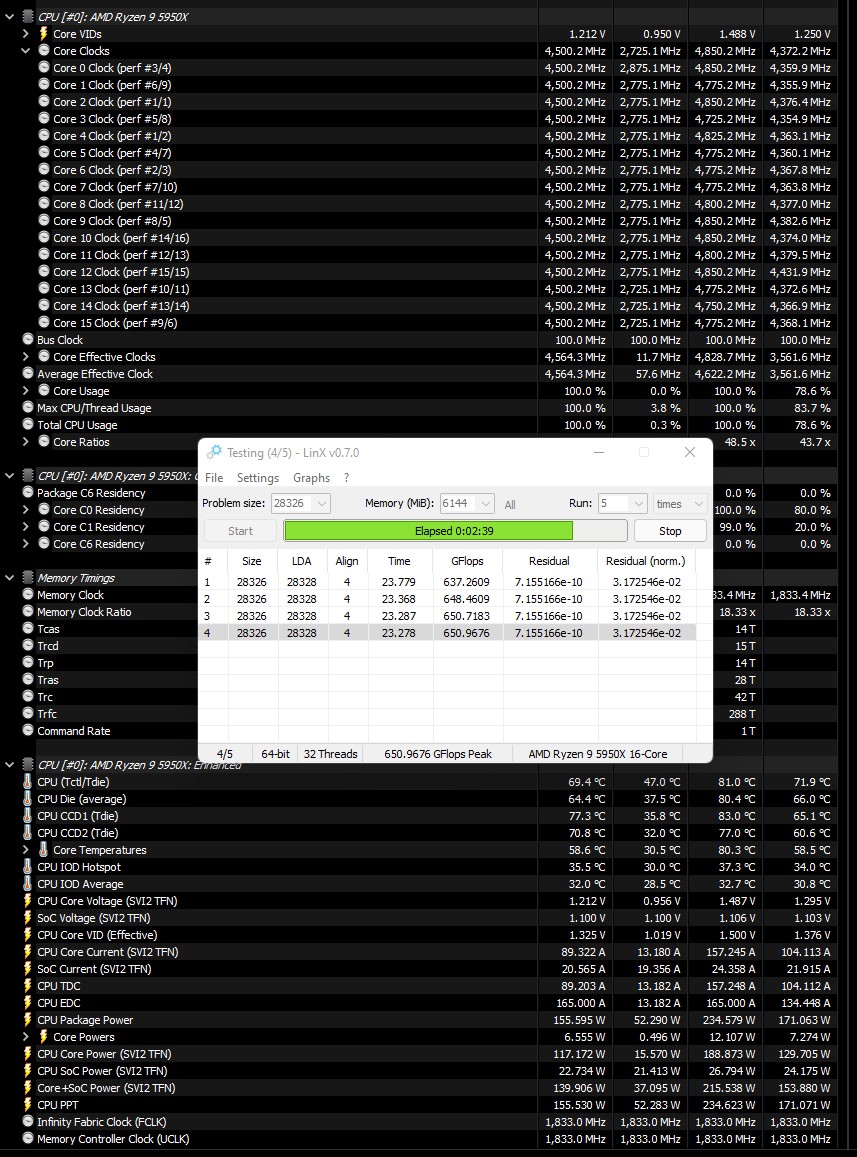 В принципе я тоже грешу на В450 pro gaming т.к. при выставлении равных показателей HWinfo всегда показывает меньший вольтаж/ампераж/потребление. А то и блок питания ещё слобоват. По температуре упора нет, а в РВО не бустит.