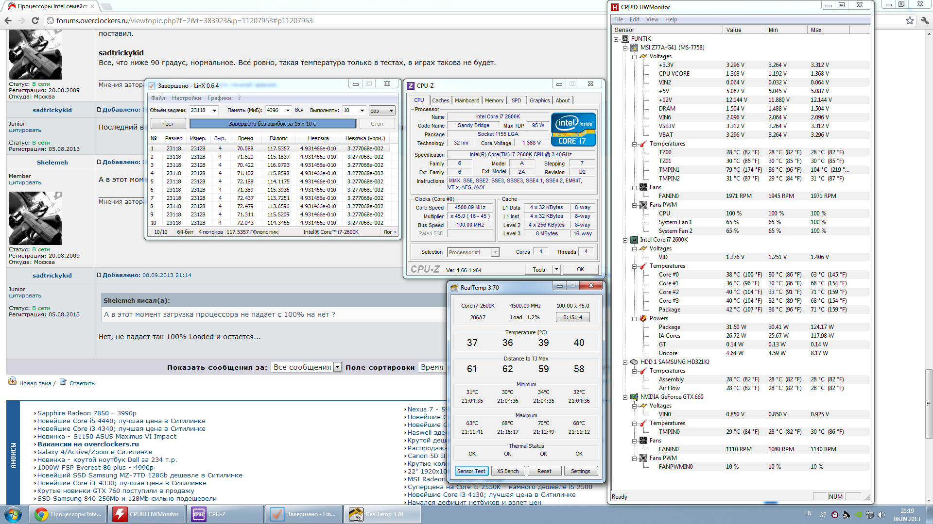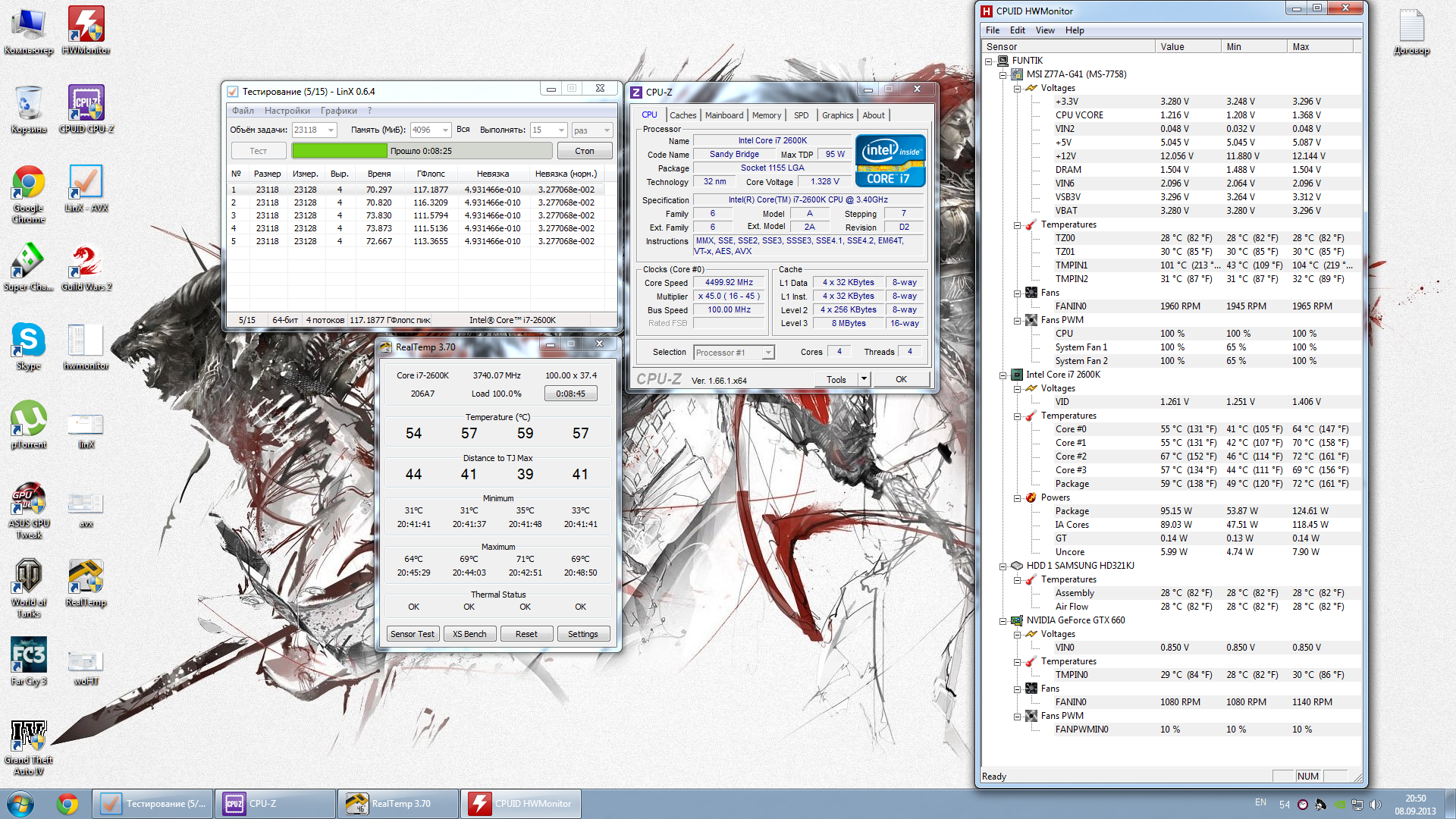 Вот как-то так получилось, температура в нагрузке 68-70 градусов. РеалТемп использую параллельно.